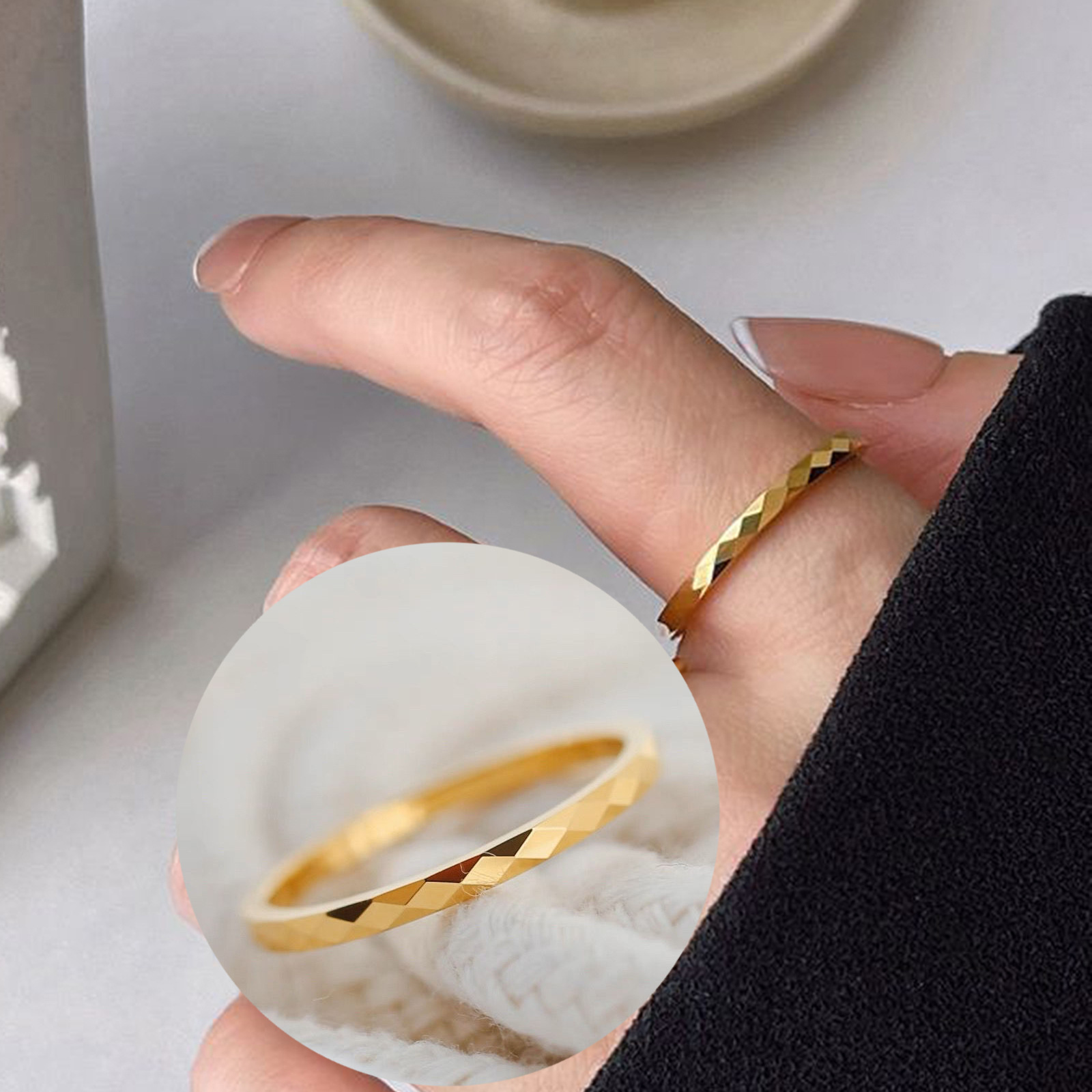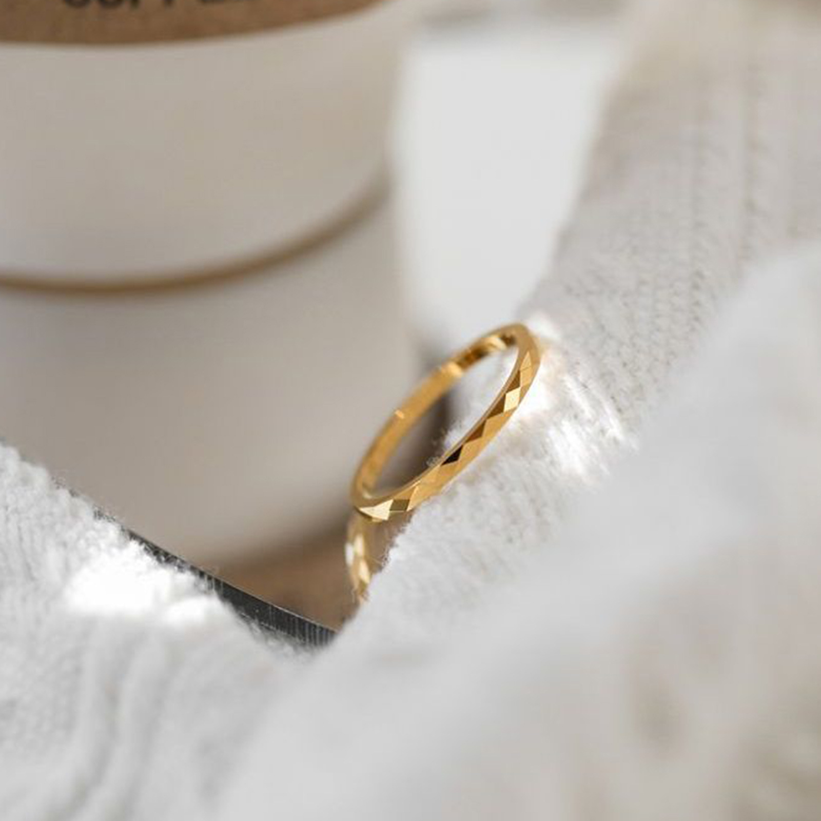 Be the first to review “2mm Diamond Pattern New Titanium Steel Non-Fading Ring Ins High-End Feel Internet Celebrity Gold Pattern Cut Surface Jewelry” Cancel reply