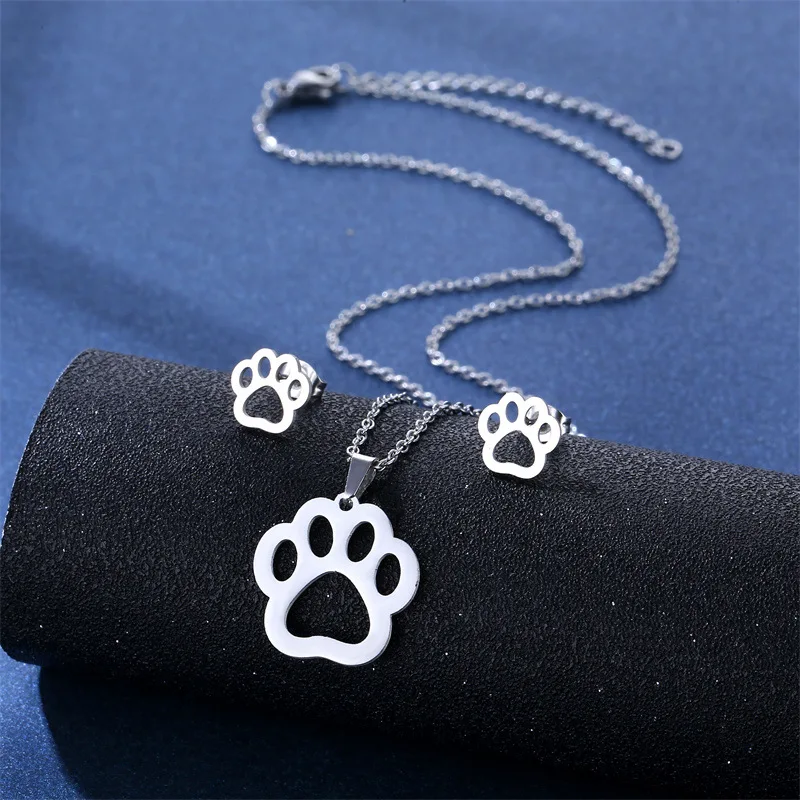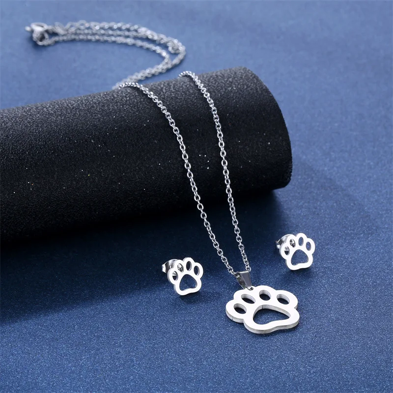 Be the first to review “Animal Foot Necklace and Earring Suit Cute Puppy Cat’s Paw Steel Clavicle Chain Wholesale” Cancel reply