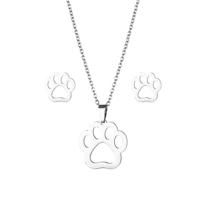 Be the first to review “Animal Foot Necklace and Earring Suit Cute Puppy Cat’s Paw Steel Clavicle Chain Wholesale” Cancel reply