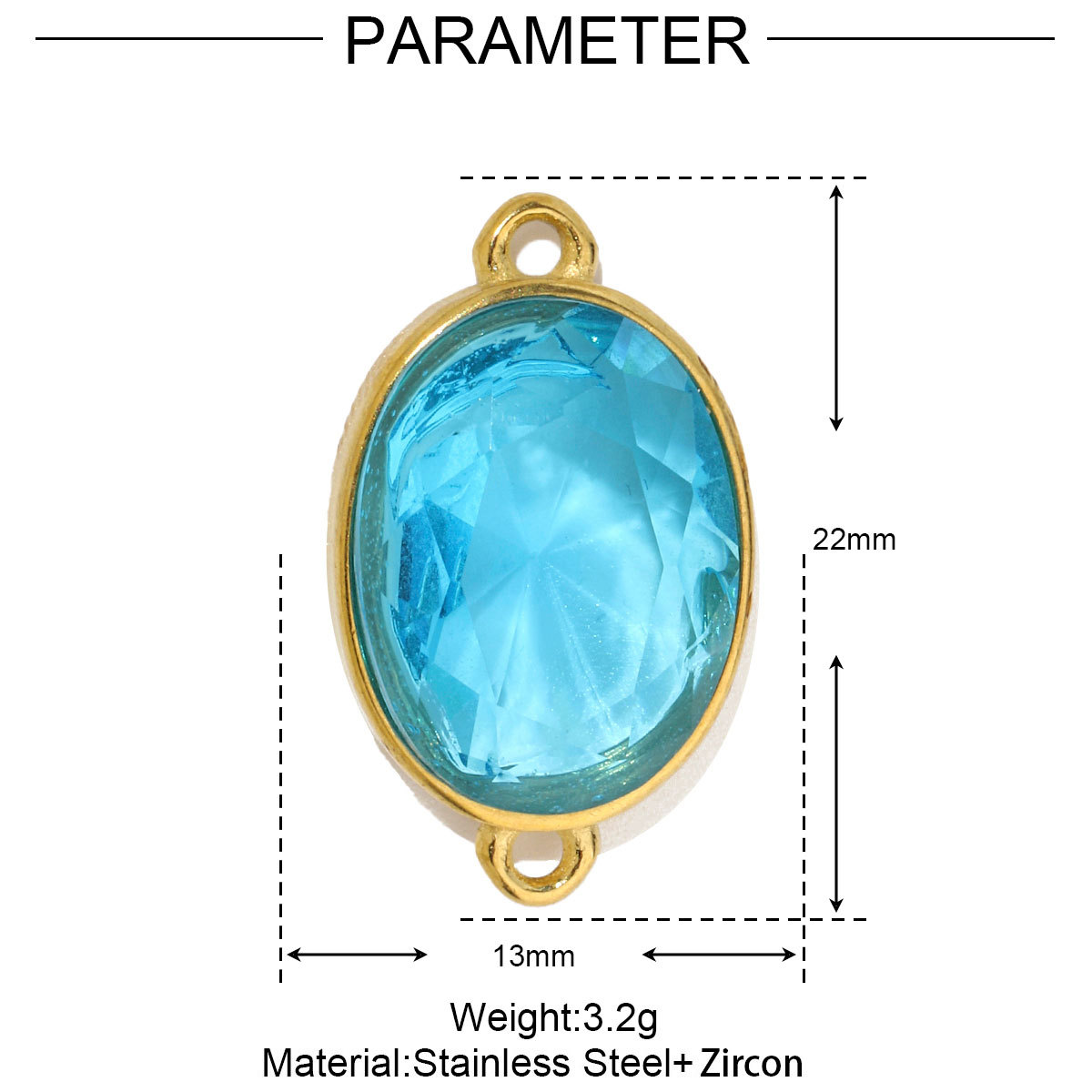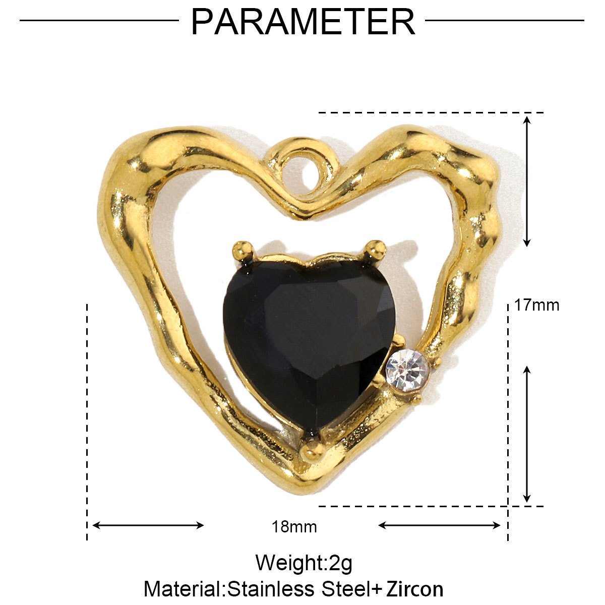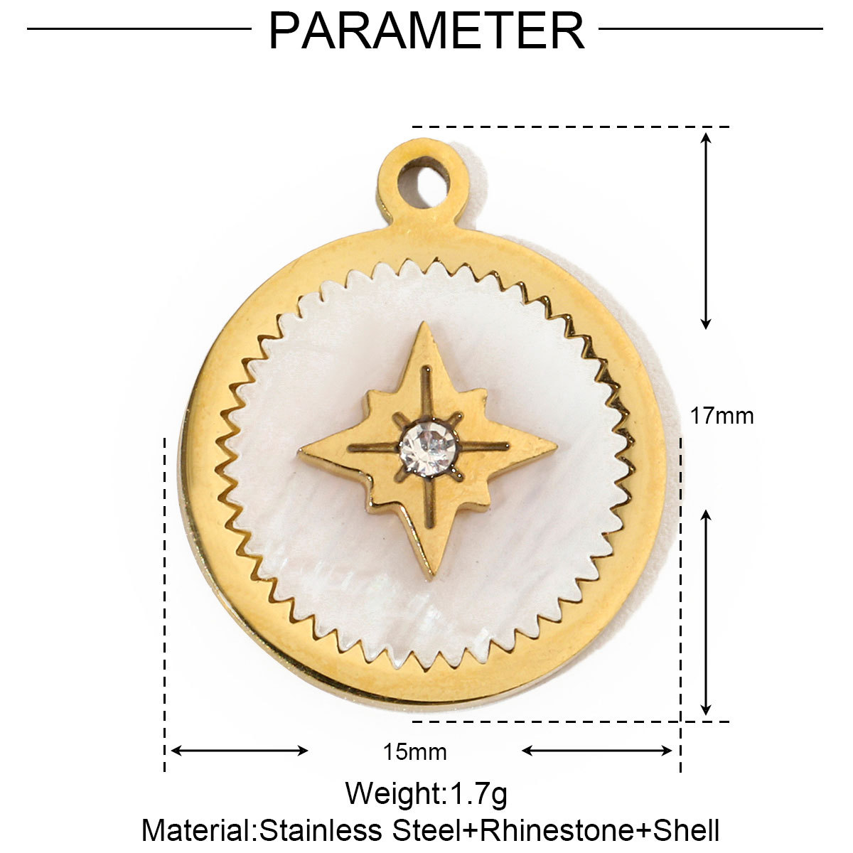 5 PCS/Package 15mm Hole 1~1.9mm 304 Stainless Steel Zircon 18K Gold Plated Constellation Pendant