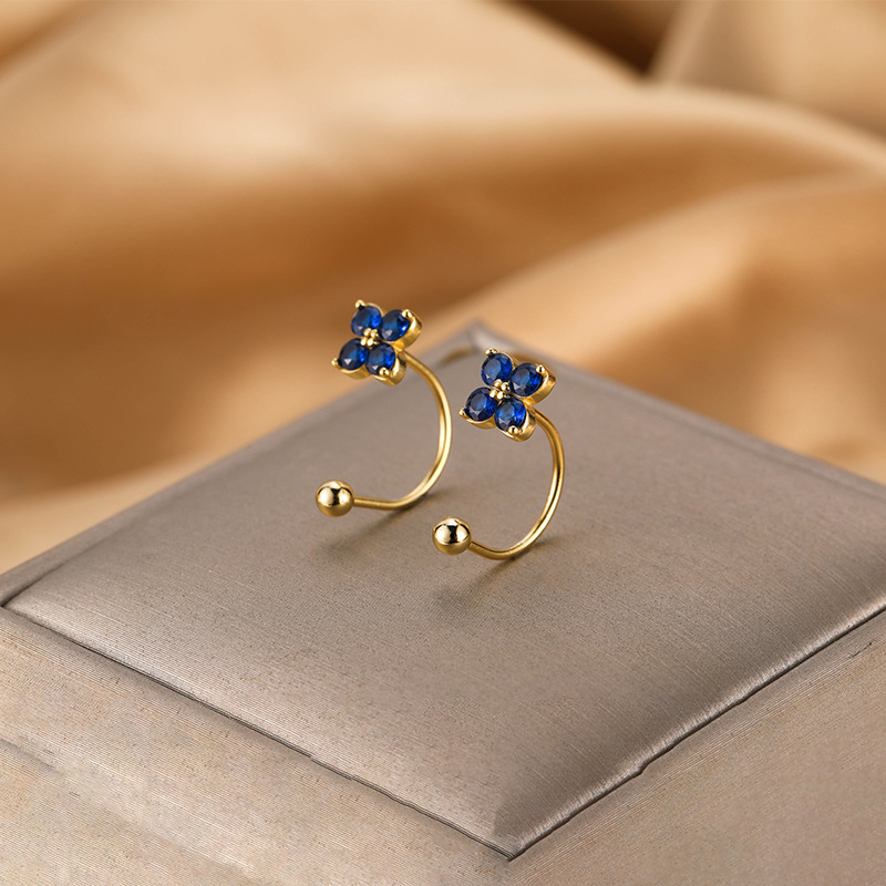 | Color | [Yellow Gold] Blue Zirconium Flower Stud Earrings, [White Gold] Blue Zirconium Flower Stud Earrings |