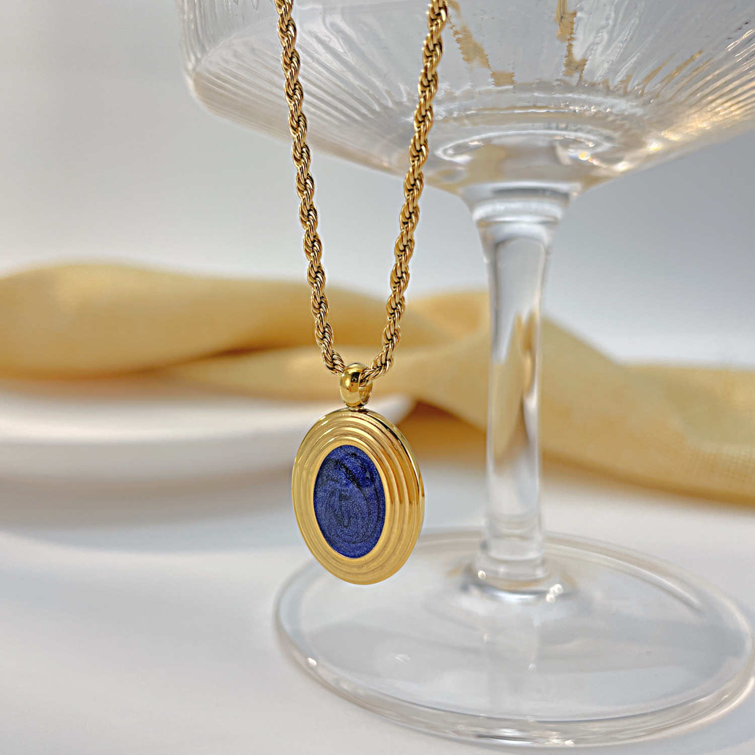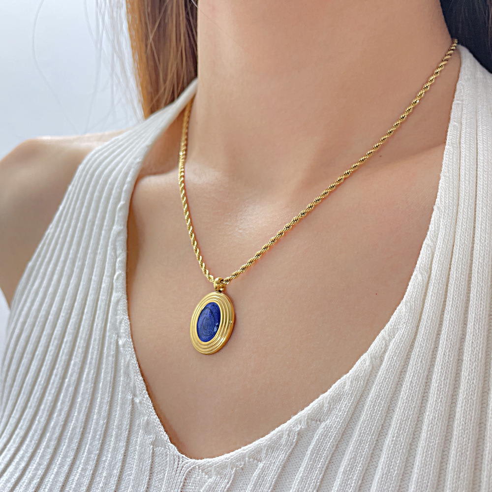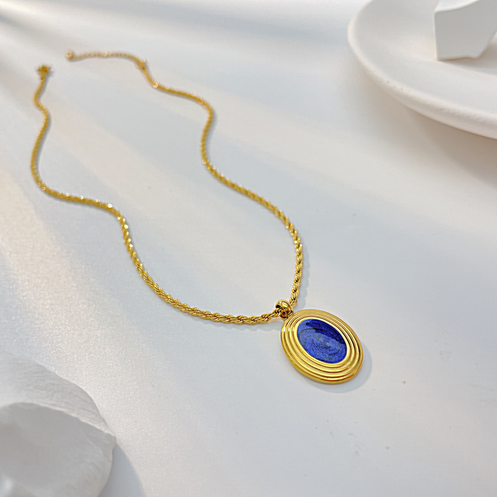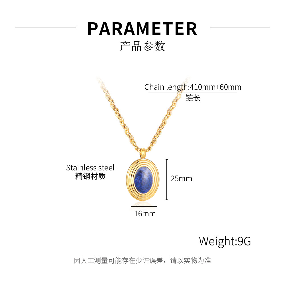 Blue Oval Titanium Steel Pendant Personalized All-Match Stainless Steel Necklace