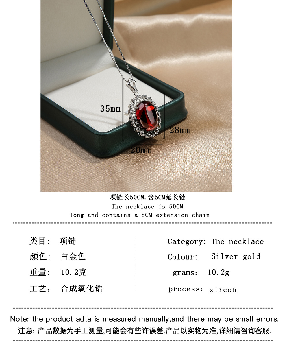Be the first to review “Brilliant Oval Red Garnet Cubic Zirconia Pendant Necklace Anniversary Party Luxury Lady’s Necklaces Gift New Jewelry” Cancel reply