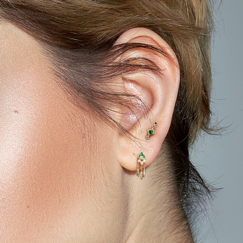 | Color | [Yellow Gold] Green Diamond stud earrings single, Other color customization |