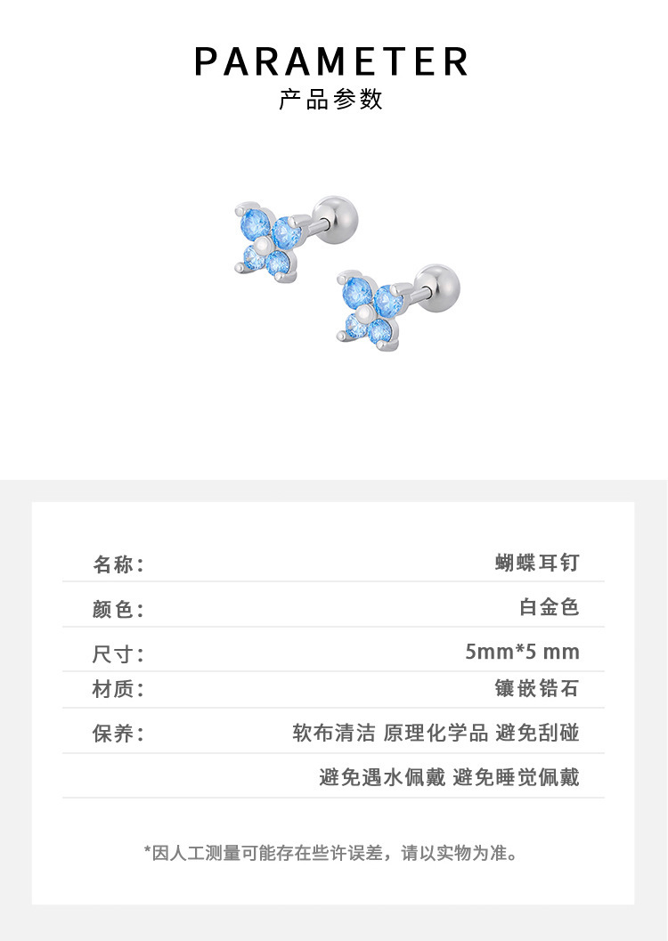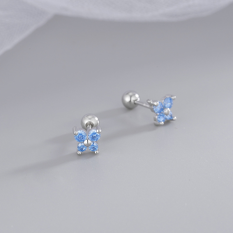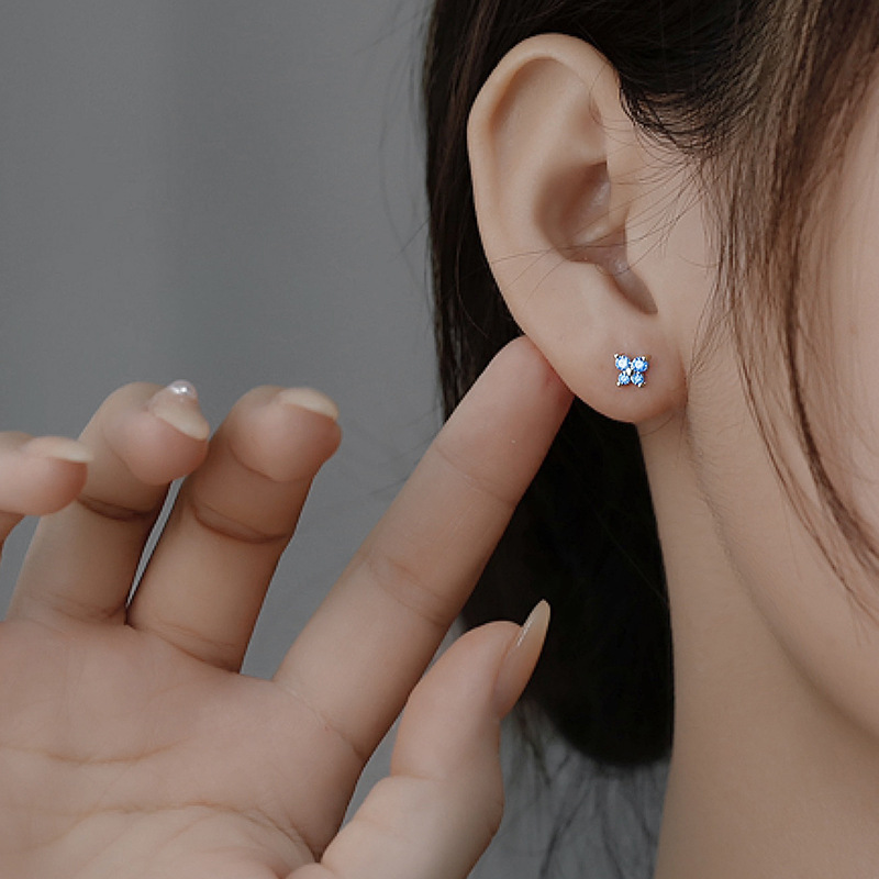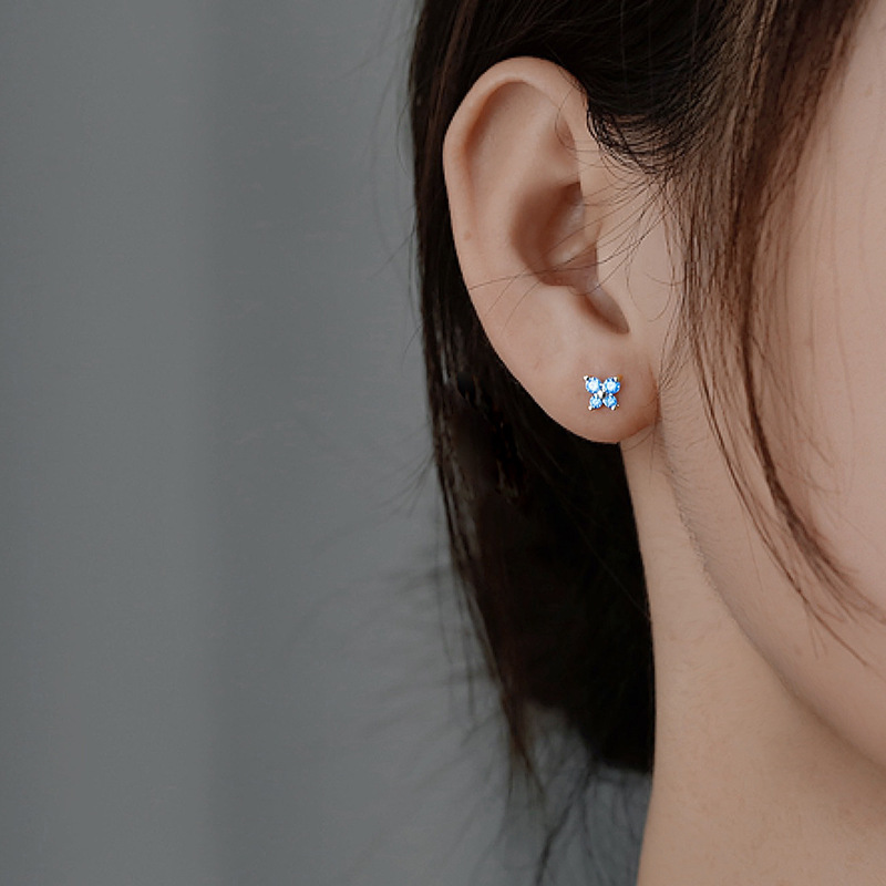 | Color | [White Gold] Blue Zirconium Butterfly Stud Earrings |