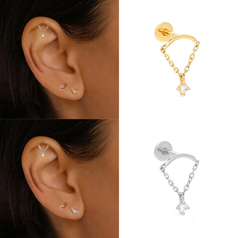 | Color | [Yellow Gold] Chain Single Diamond Earrings (Single), [White gold] Chain single diamond stud earrings (single) |