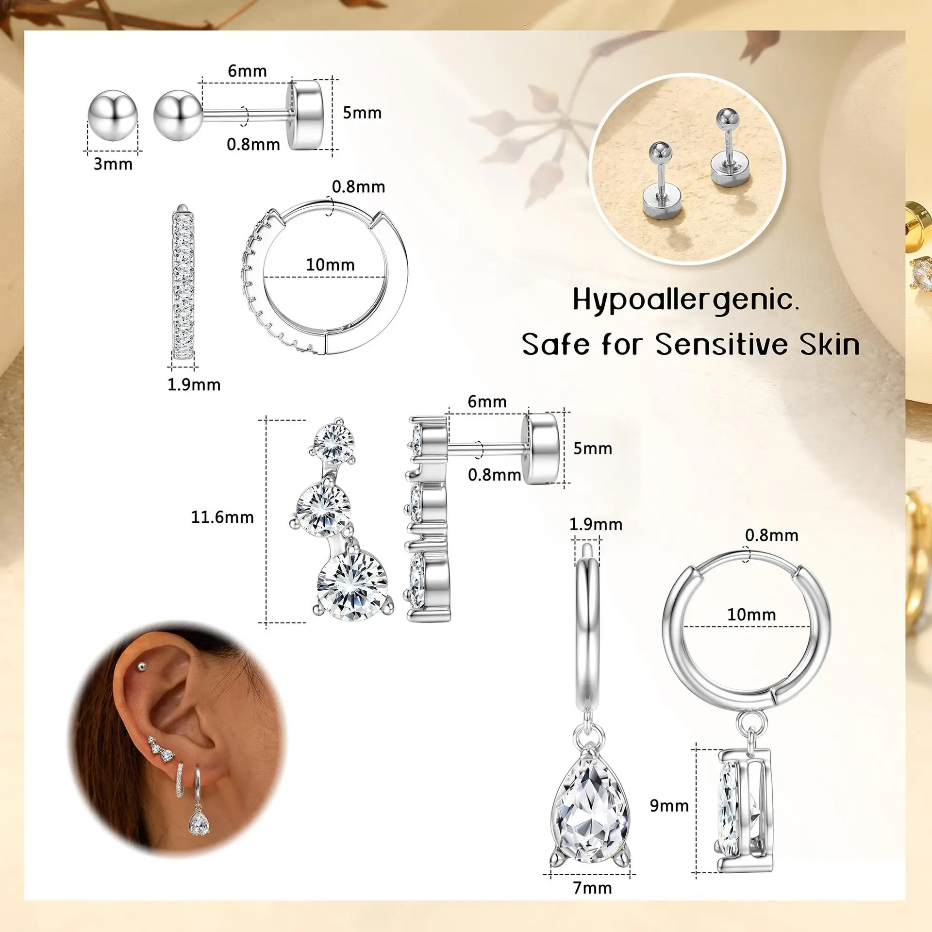 Classic Hoop Earrings Set for Women Geometric Pendant Cartilage Piercing Earring Trendy Jewelry