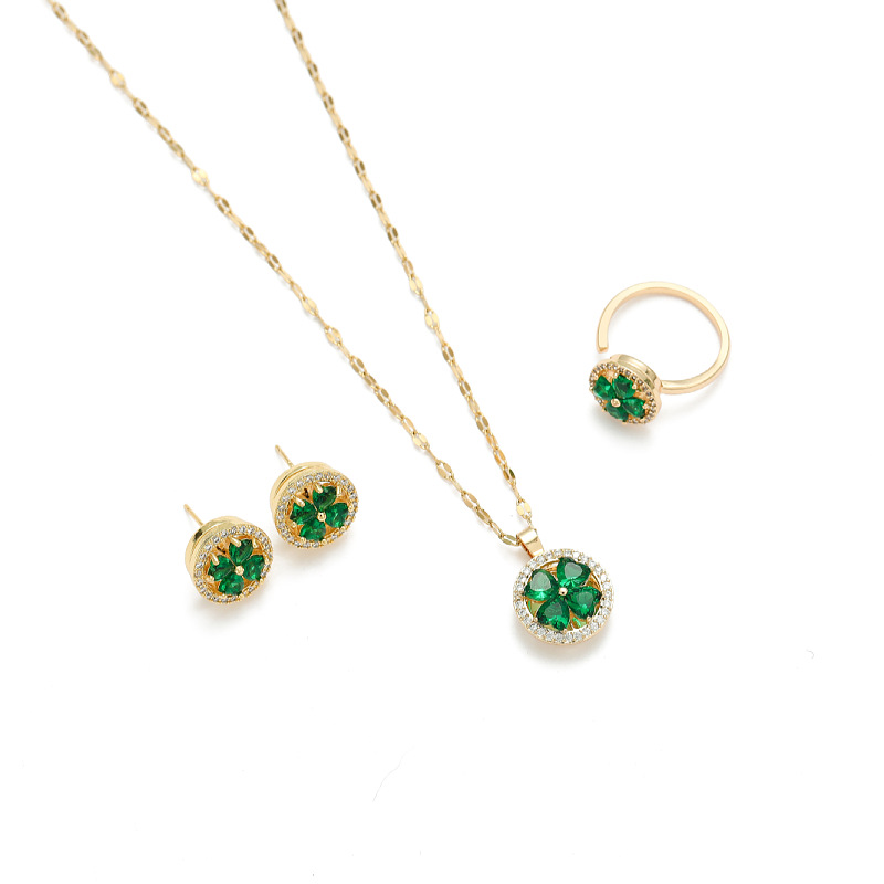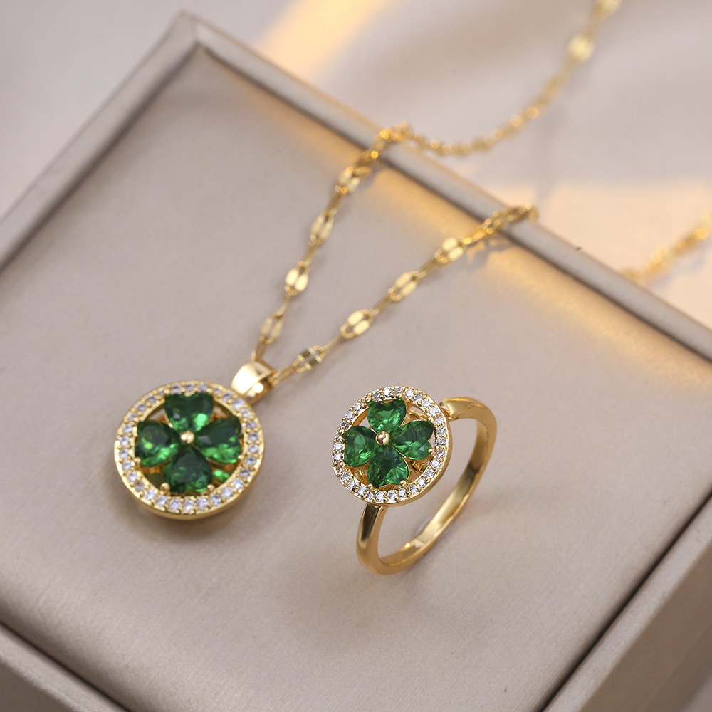 Be the first to review “Classic Refined Chic Elegant 18K Gold Stainless Steel Four Leaf Zircon Pendant Necklace Spinner Ring Set 216045368184” Cancel reply