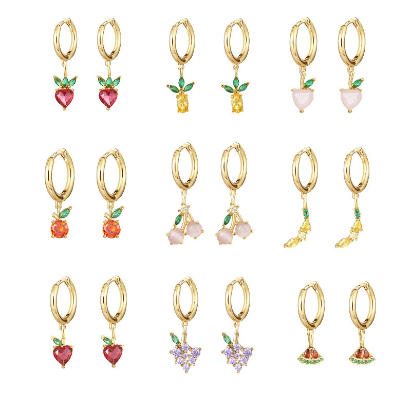 | Color | Pineapple earrings, Strawberry earrings, Orange earrings, Lemon earrings, Apple earrings, Grape earrings, Peach earrings, Watermelon earrings, Banana earrings, Cherry earrings |
