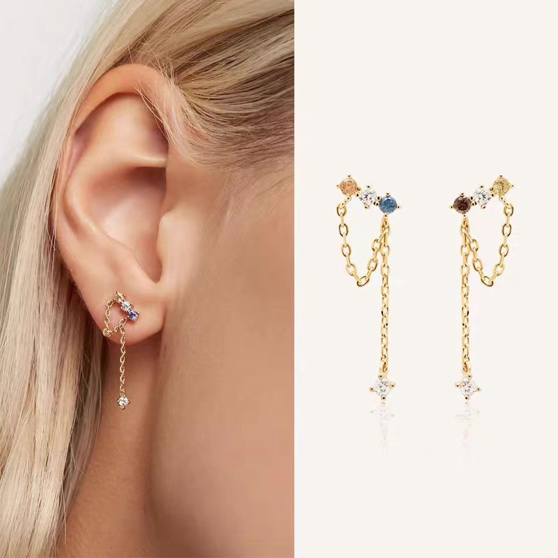 | Color | [Yellow Gold] Color Diamond Chain Stud Earrings |