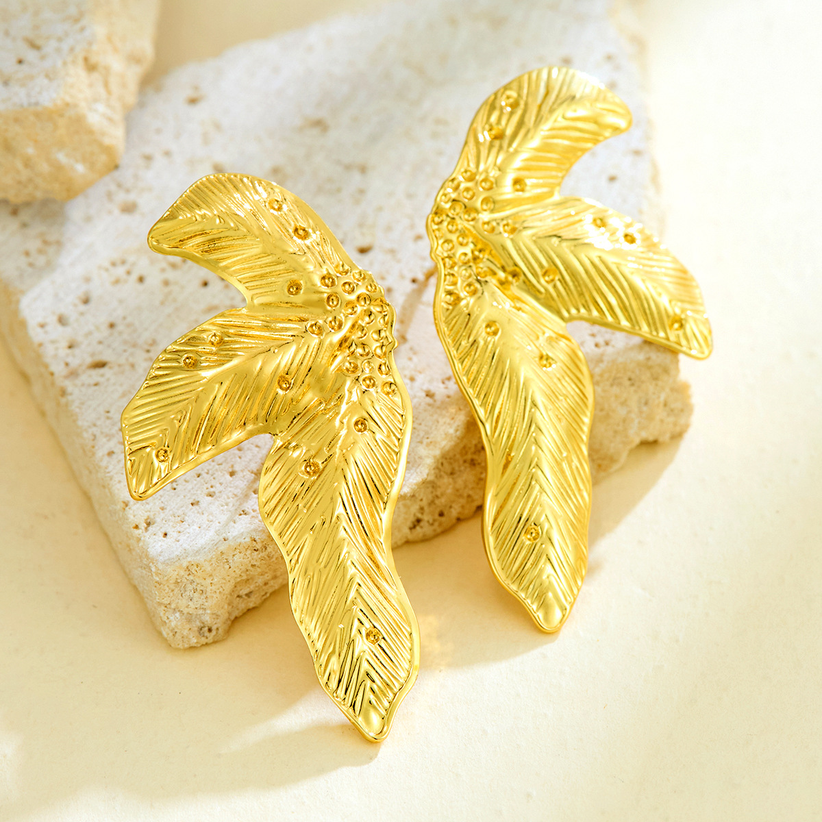 Be the first to review “Cross-Border Minimalist INS Style Leaf Stainless Steel Geometric Earrings Hollow Flower 18K Gold Plated High-End Earrings Wholesale” Cancel reply