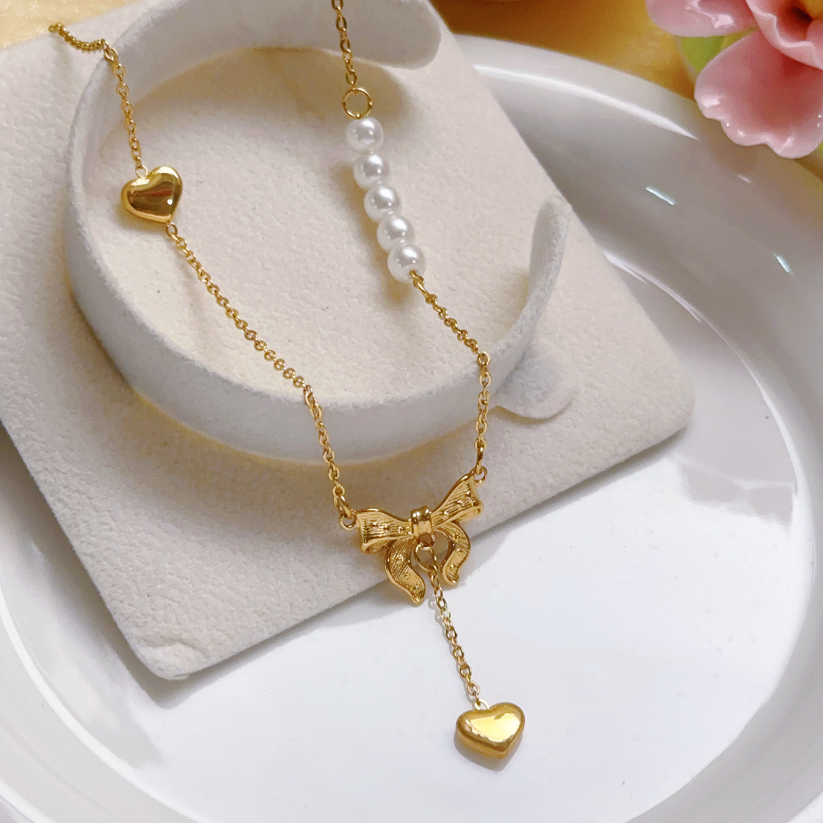 Be the first to review “Cross-Border Pearl Heart Bow Tassel Necklace for Women Gold Light Luxury Butterfly Pearl Titanium Steel Fashion Jewelry Wholesale” Cancel reply