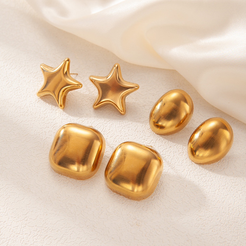 Be the first to review “Cross-Border Stainless Steel Earrings Five-Pointed Star Earrings Square Oval Cross Earrings 18K Gold Plated Earrings Niche Design” Cancel reply
