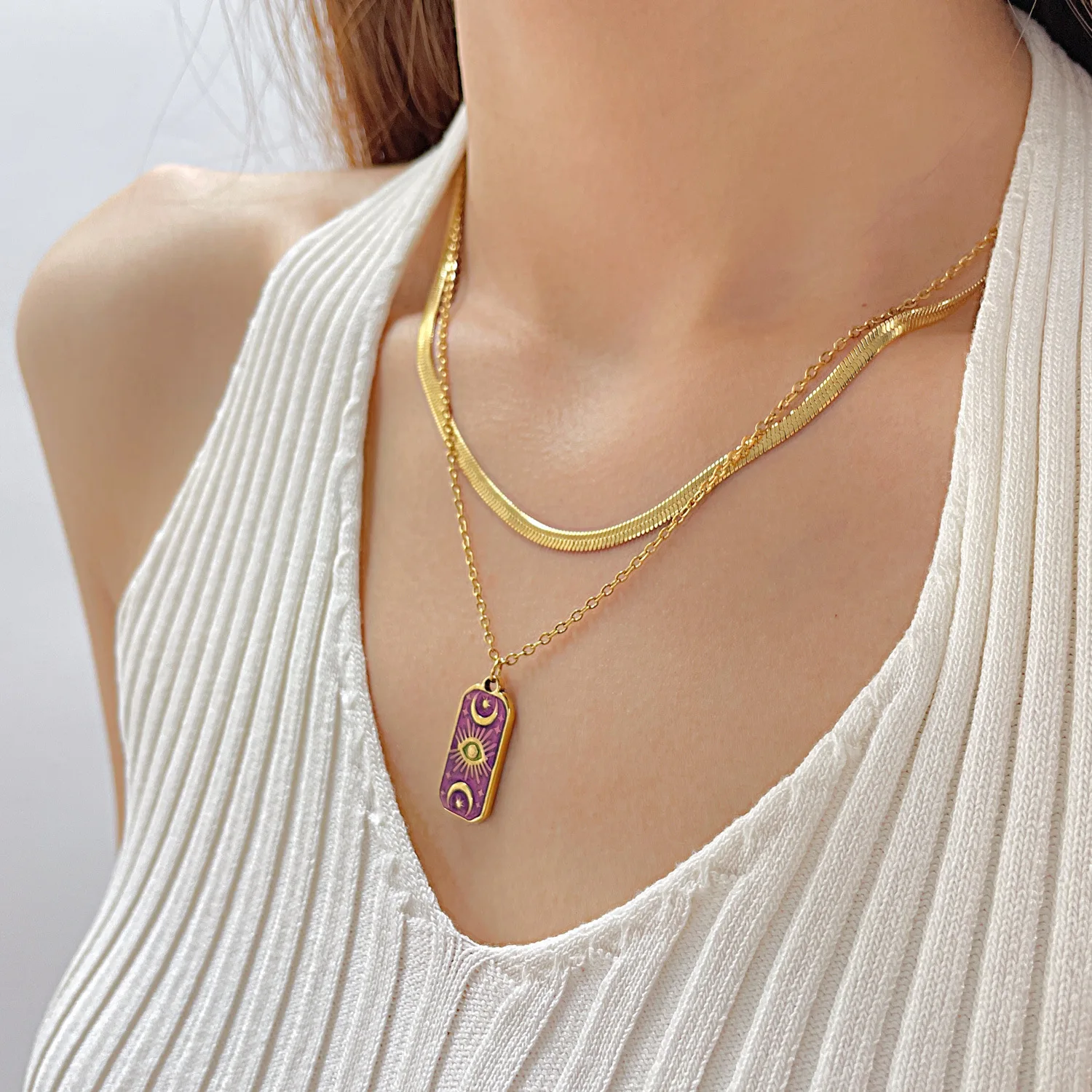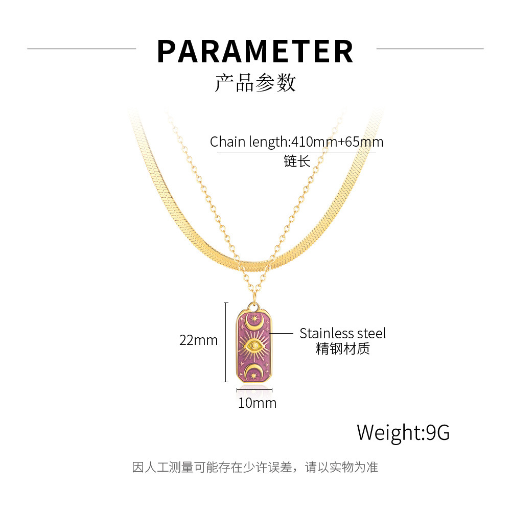 Double Titanium Steel Purple Star and Moon Pendant Stainless Steel Devil’s Eye Necklace