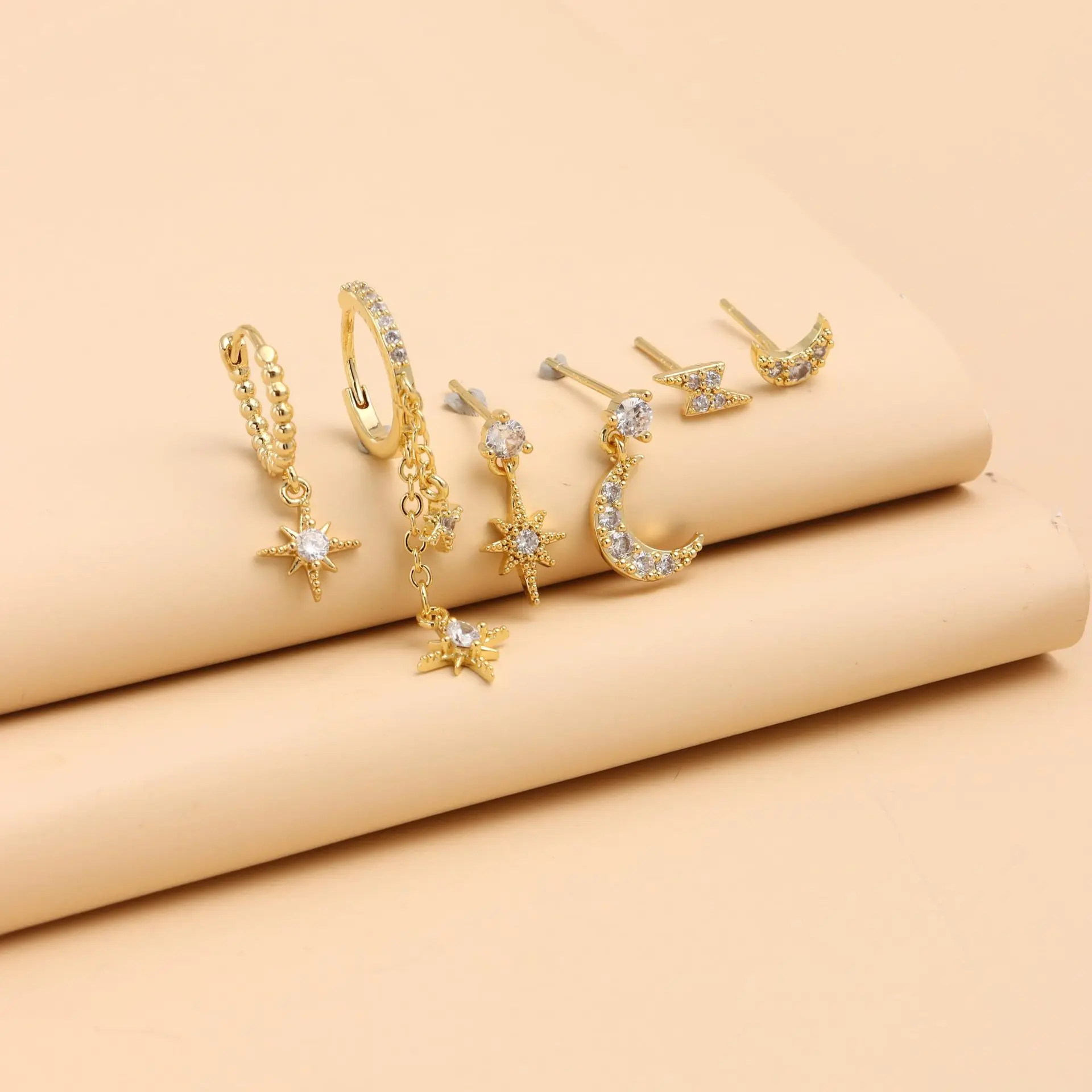 Elegant Cubic Zirconia Chain Stud Earrings for Women Star Moon Cartilage Earring Piercing Jewelry