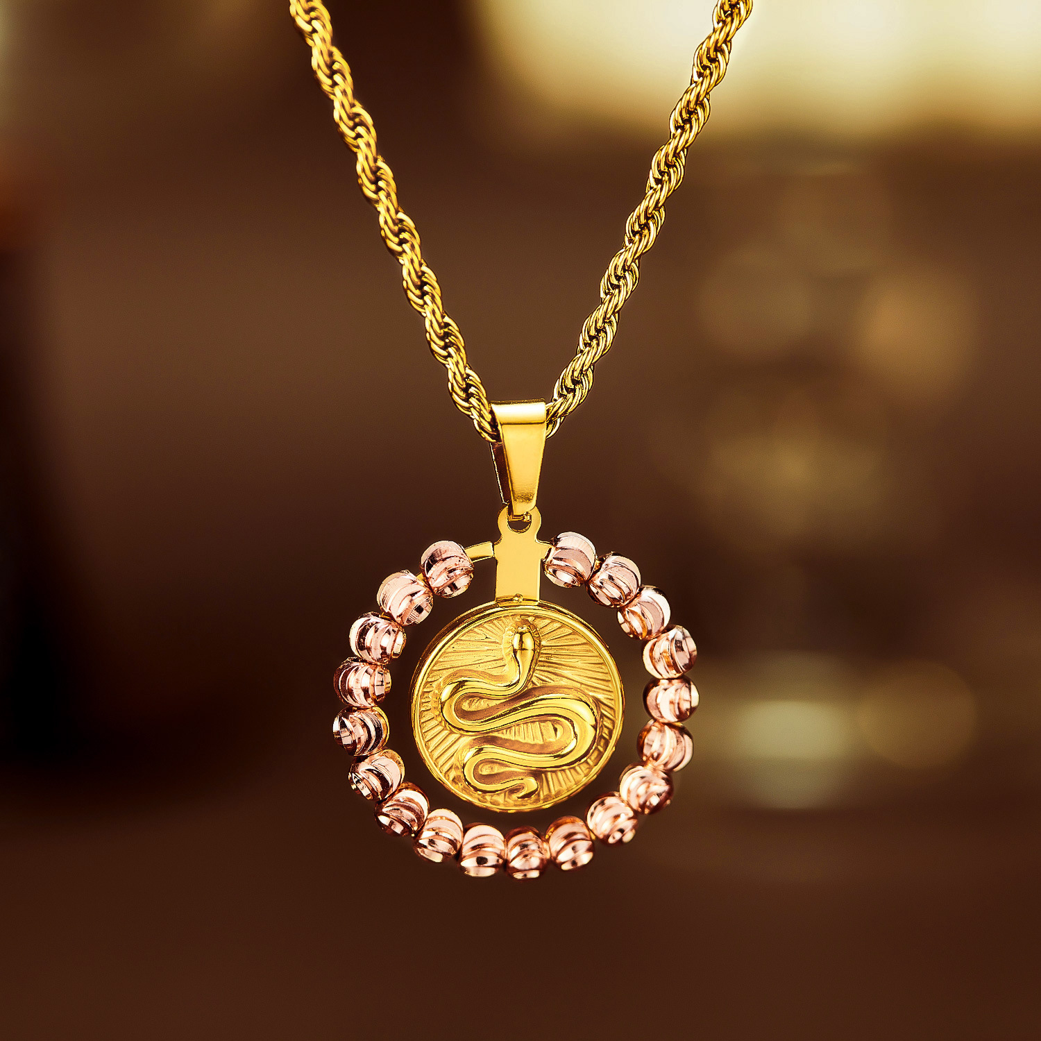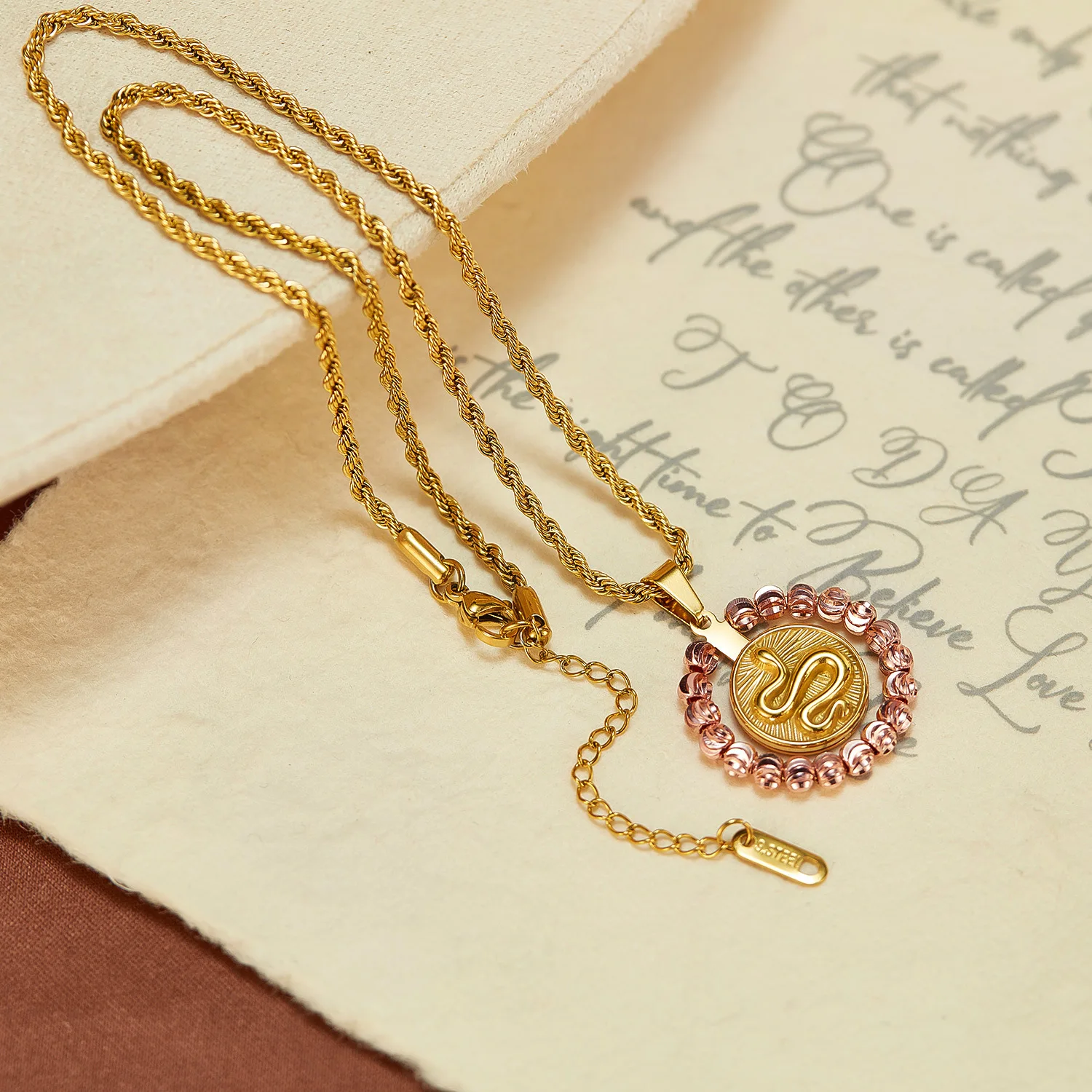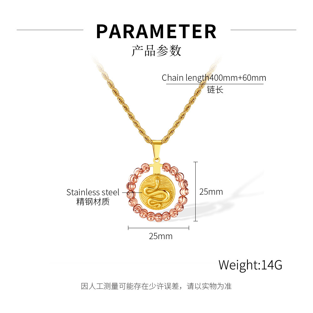 Elegant Retro Stainless Steel Hollow Circle Snake Pendant Fashion Commuter Creative Sense Necklace Female