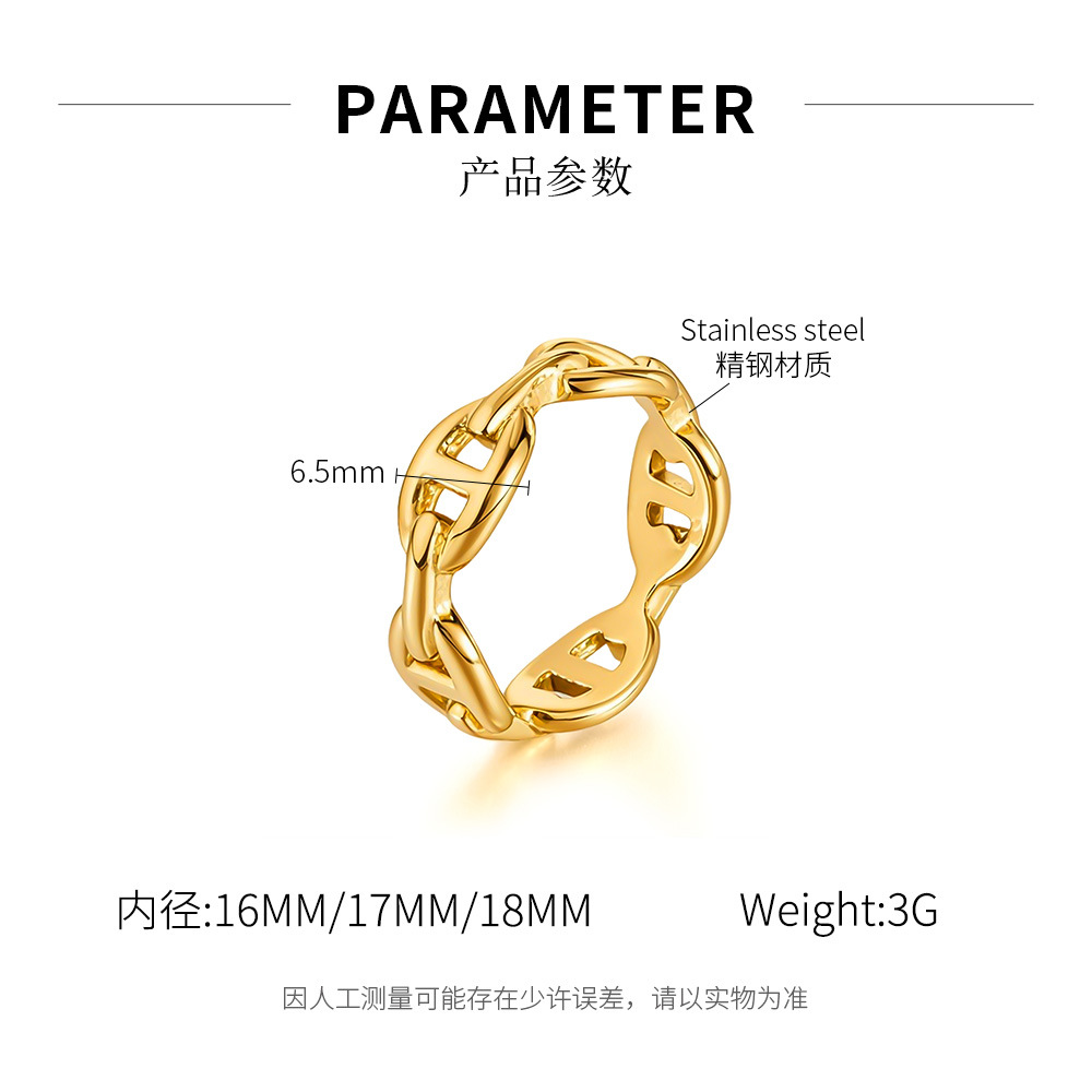 Be the first to review “European and American Fashion Pig Nose Titanium Steel Ring for Women Fashion Niche Versatile Design Sense Hollow Stainless Steel” Cancel reply