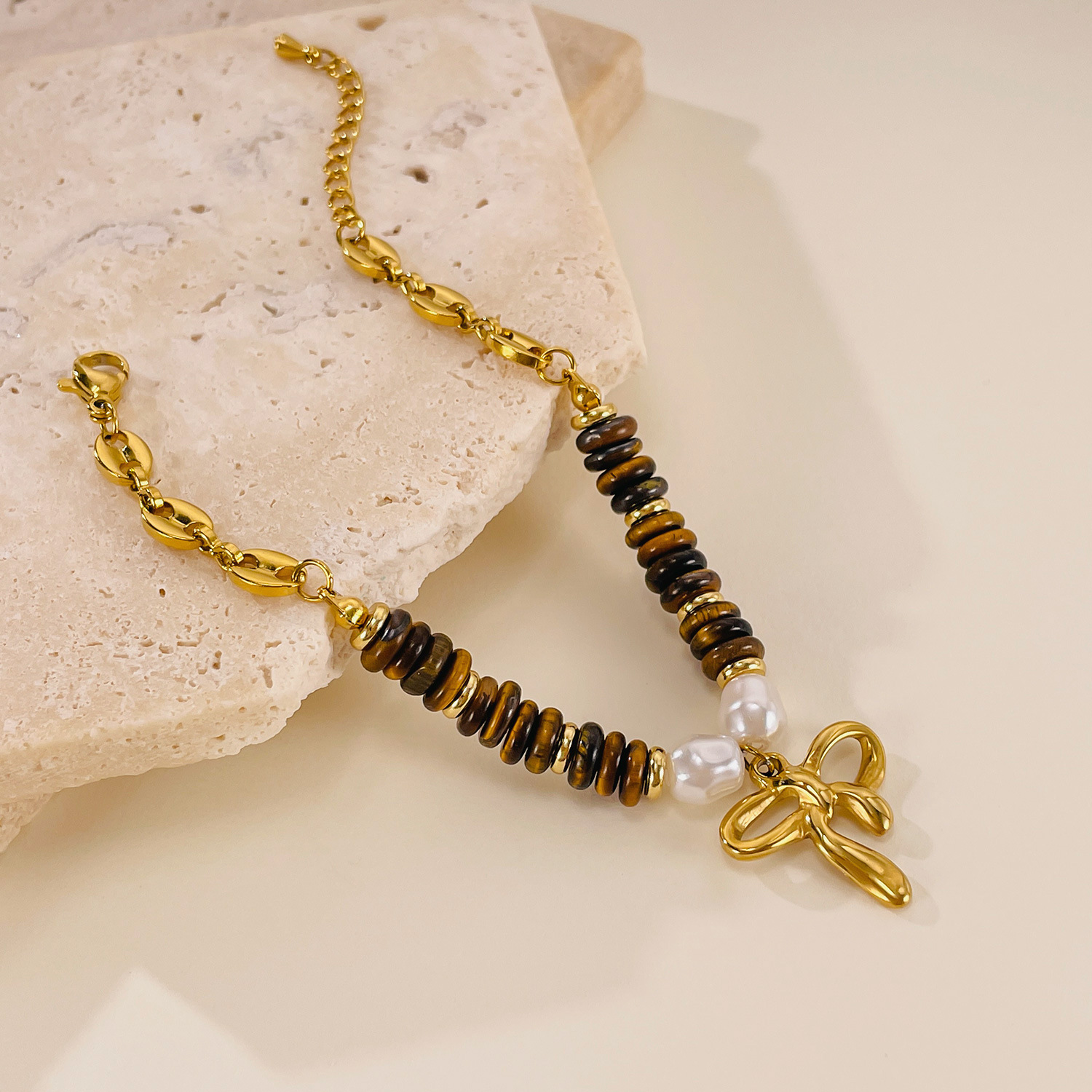 Be the first to review “European and American Pearl Bracelet for Women’s Light Luxury Retro Maillard Color Tiger Eye Stone Bow Accessories” Cancel reply