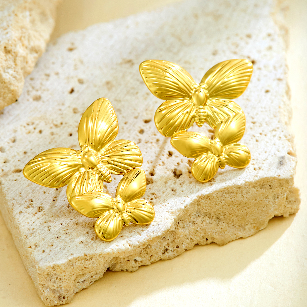 Be the first to review “European and American Retro Simple Fashion Gold Stainless Steel Double Butterfly Stud Earrings Niche Women’s Fashion Versatile Earrings” Cancel reply