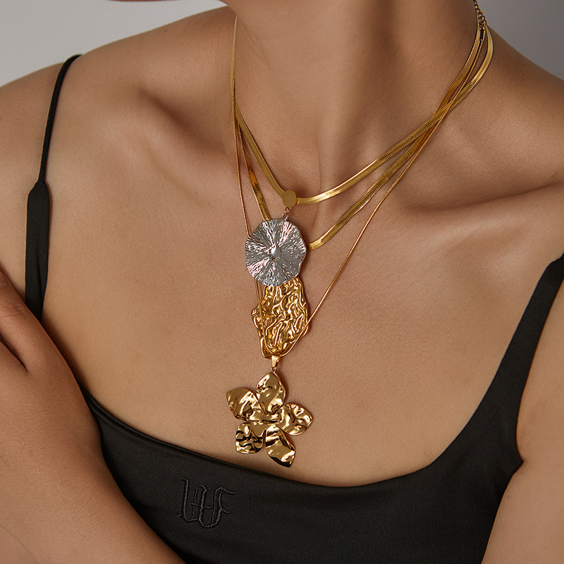 Be the first to review “Exaggerated Flower Ornament Women Pleated Flower Petal Palace Gold Plated Silver Alloy Necklace 216045105579” Cancel reply