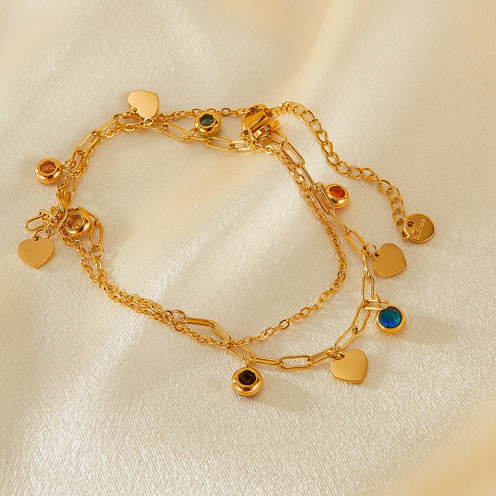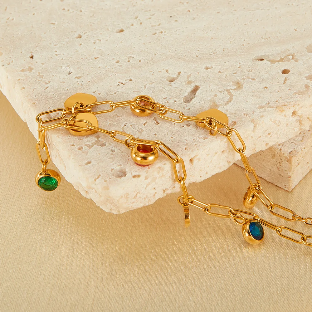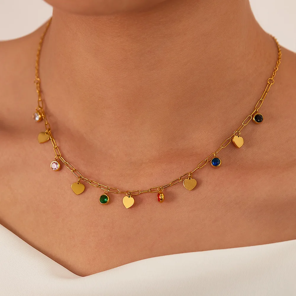 Fashion Commuter Office Lady Style Stainless Steel Gold Plated Love Pendant Color Zircon Temperament Necklace