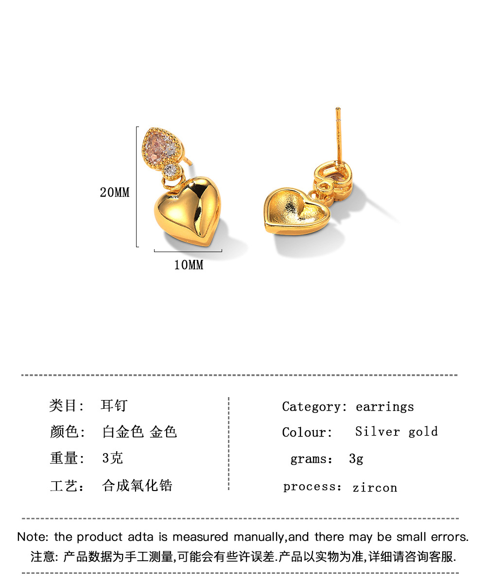 Be the first to review “Fashion Cubic Zirconia Love Heart Stud Earrings Copper 18K Gold Plated Handmade Daily Jewelry for Women” Cancel reply