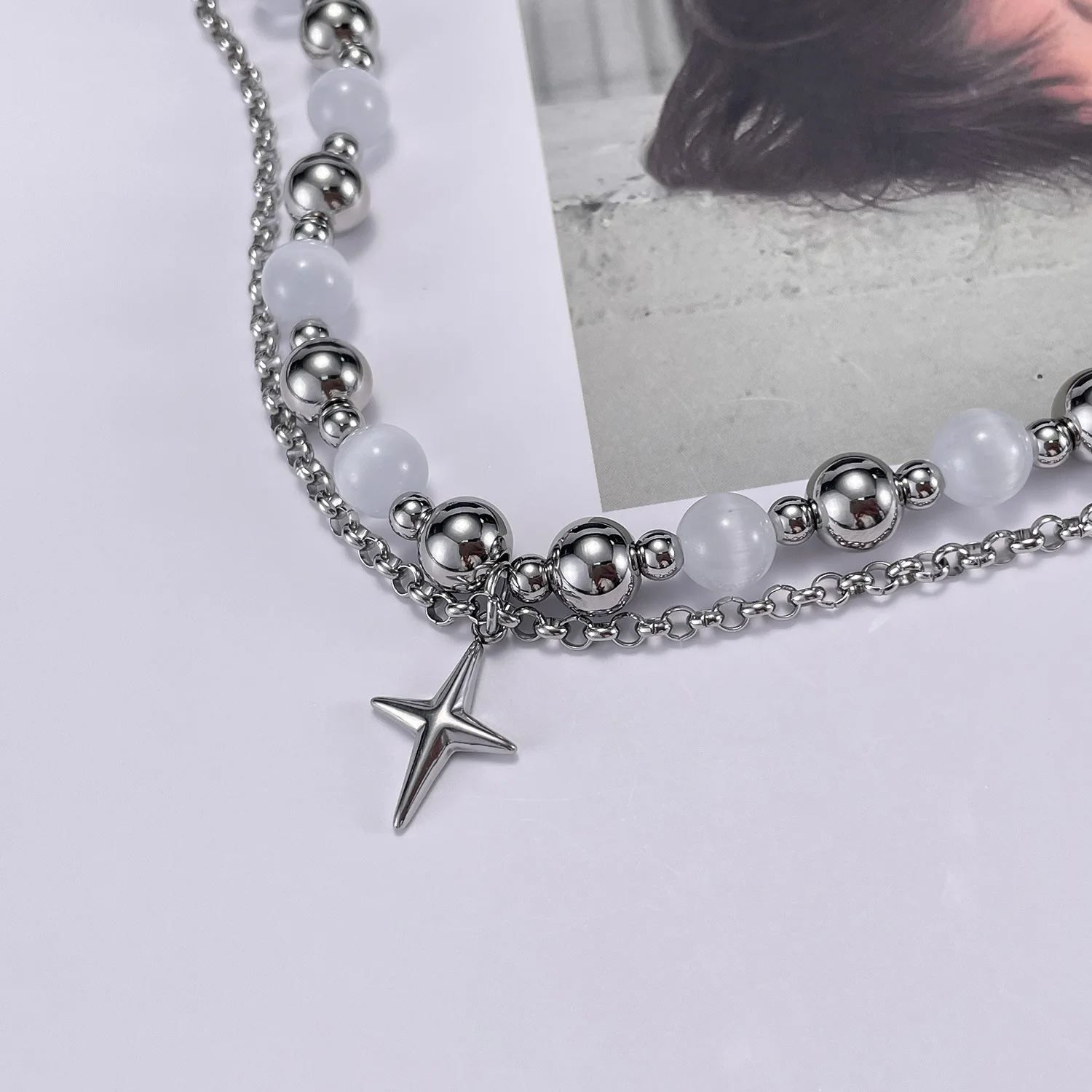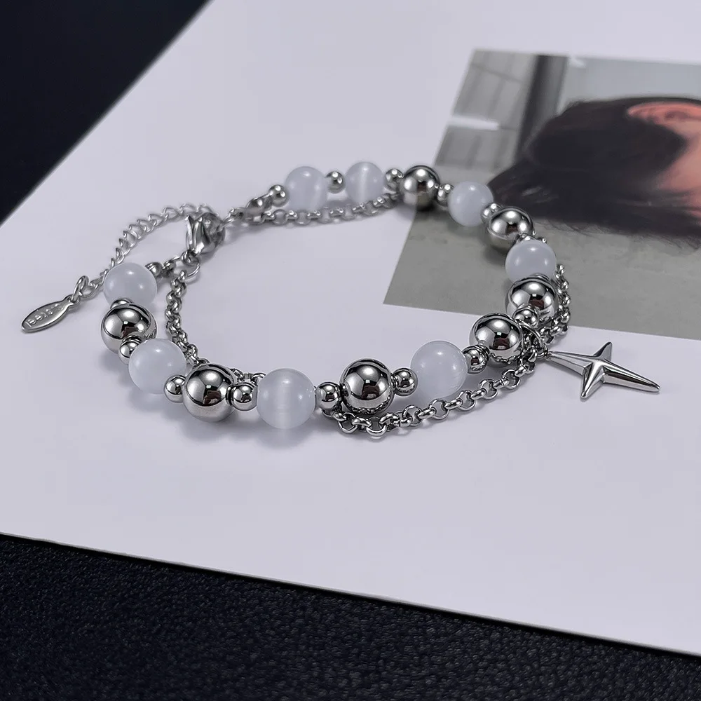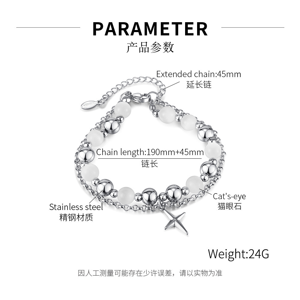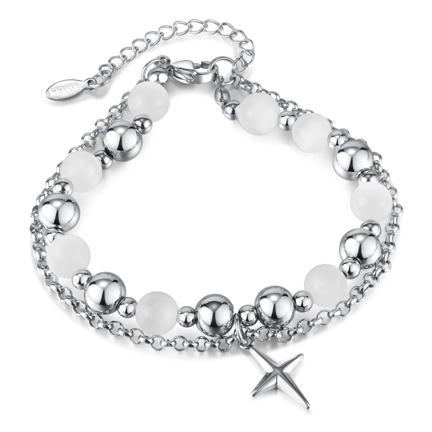Fashion Design Stainless Steel Double Layer Twin Cross Pendant Opal Bracelet