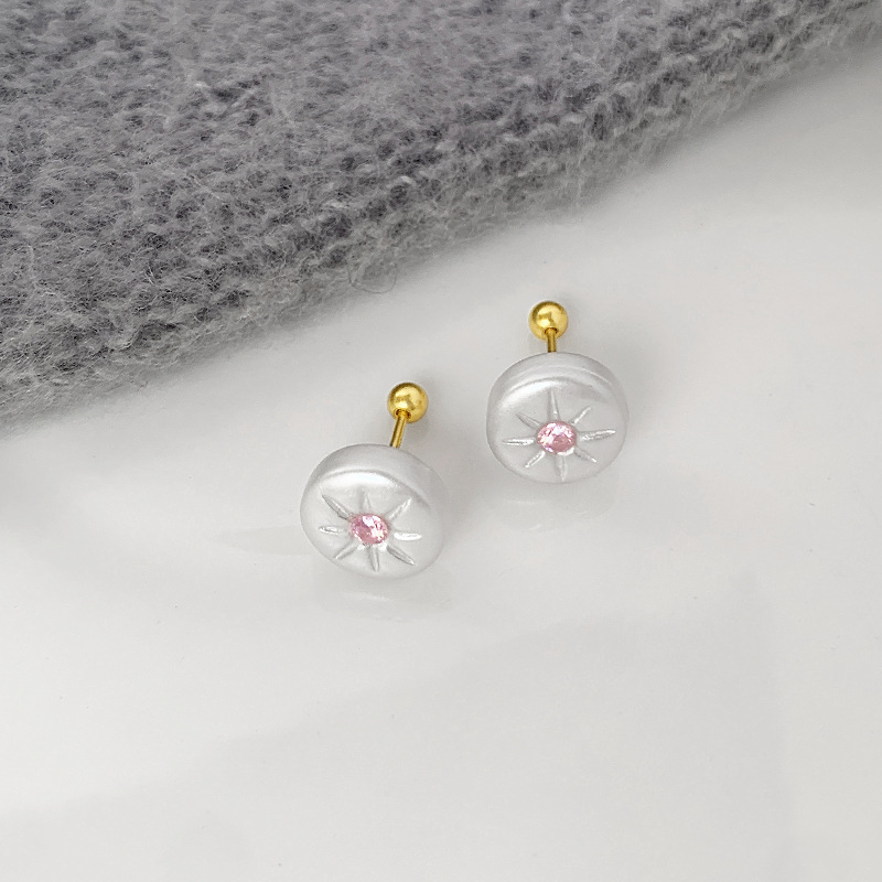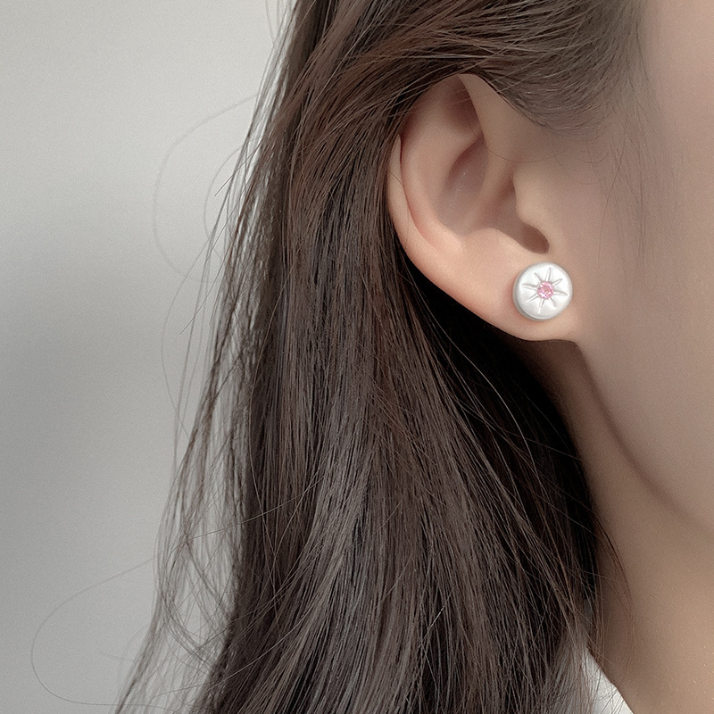| Color | Pink diamond octagram stud earrings |