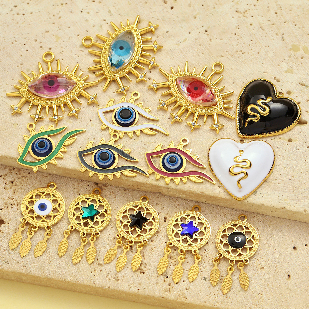 Be the first to review “Fashion Stainless Steel Enamel Heart Snake Diy Charm Women Dream Catcher Star Necklace Pendant Star Evil Eye Jewelry” Cancel reply