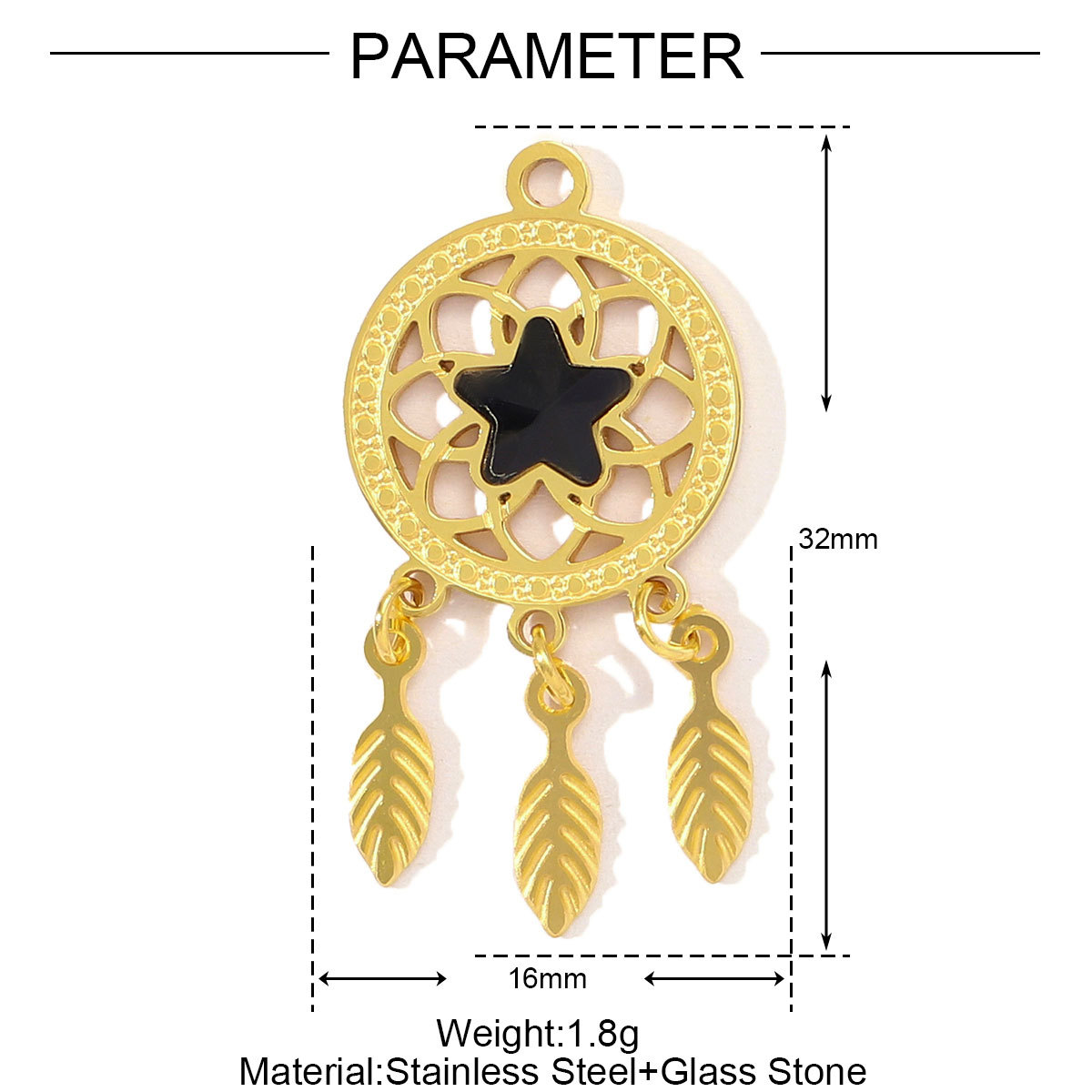 5 PCS/Package 15mm Hole 1~1.9mm 304 Stainless Steel Zircon 18K Gold Plated Constellation Pendant