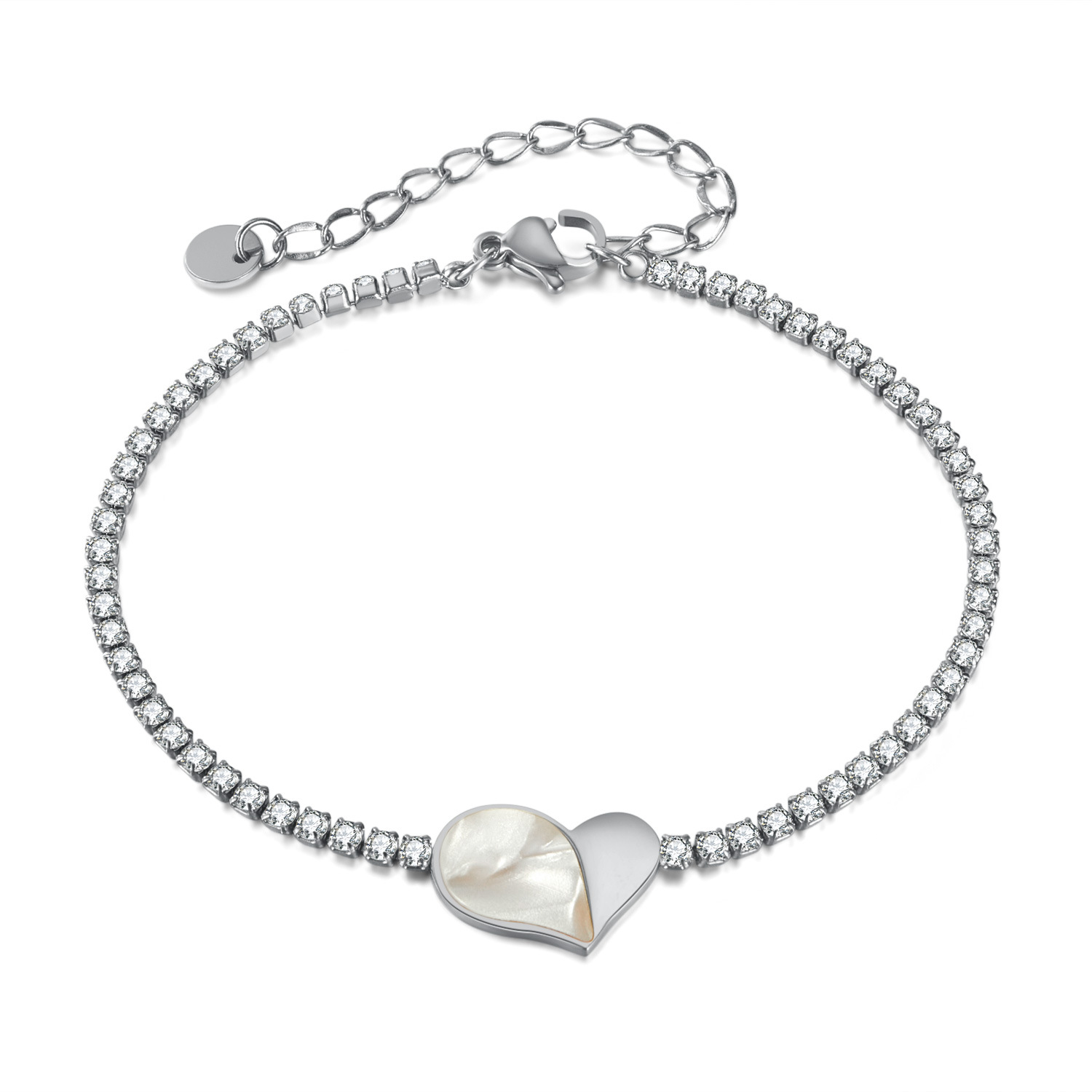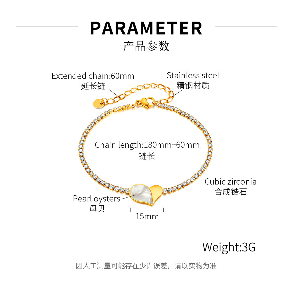 Fashion Temperament Entry Lux Design Stainless Steel Diamond Bracelet Love Mother Shell Bracelet for Women