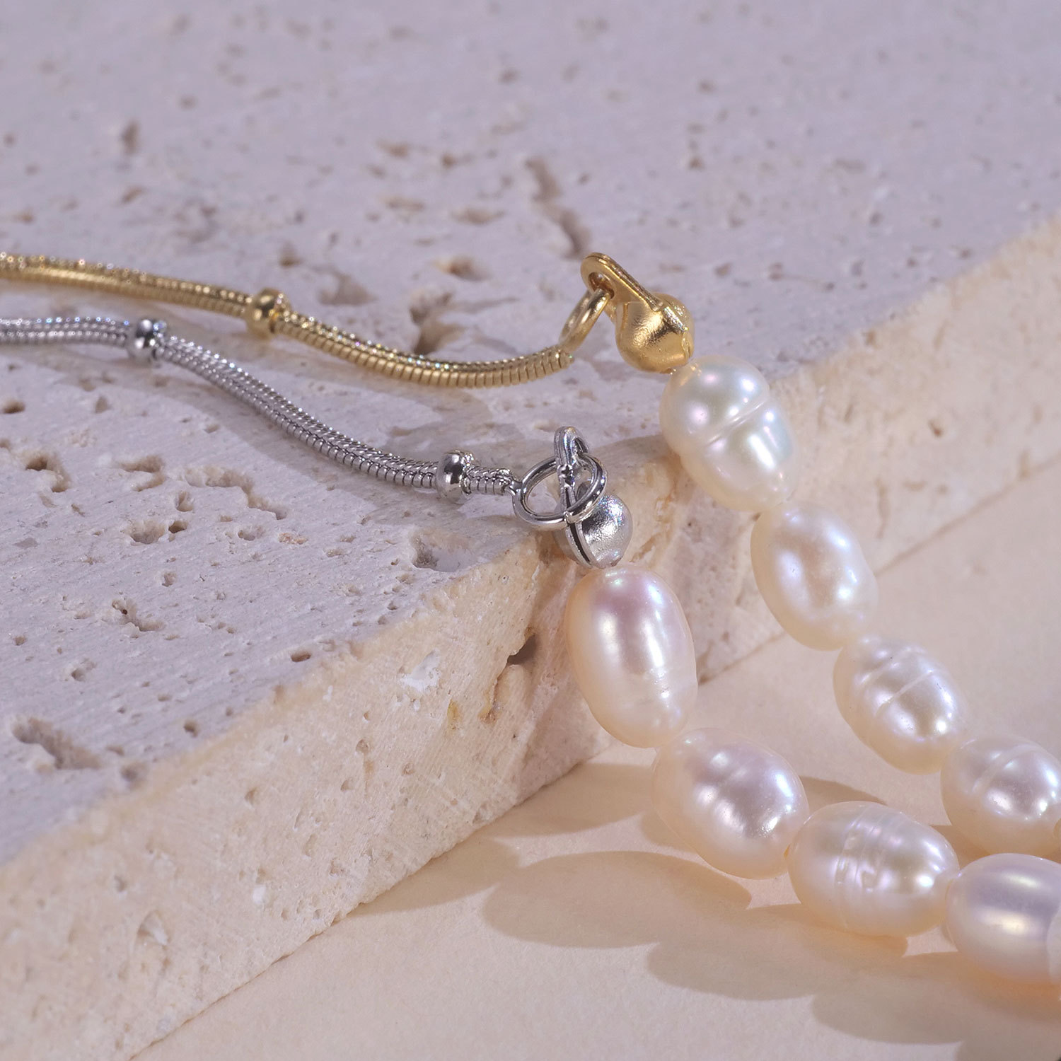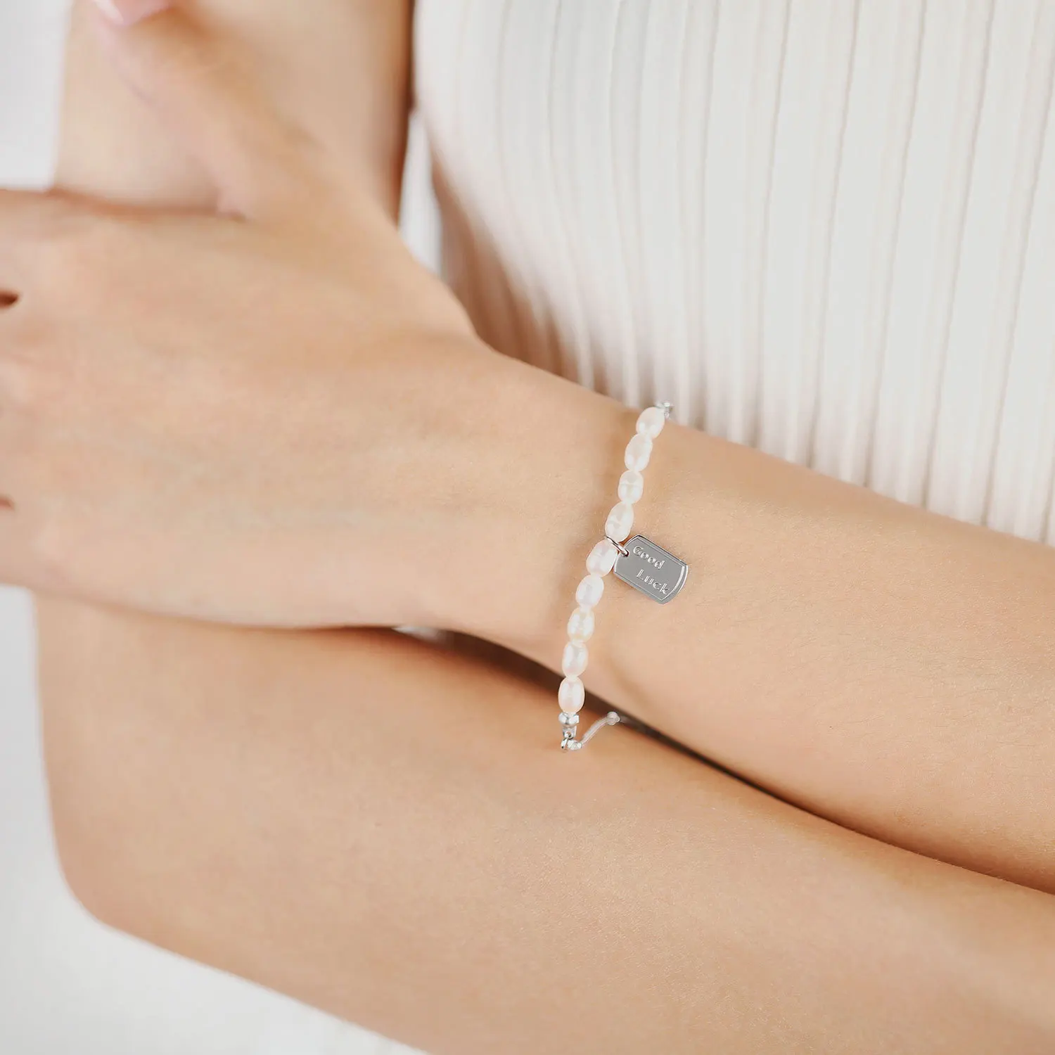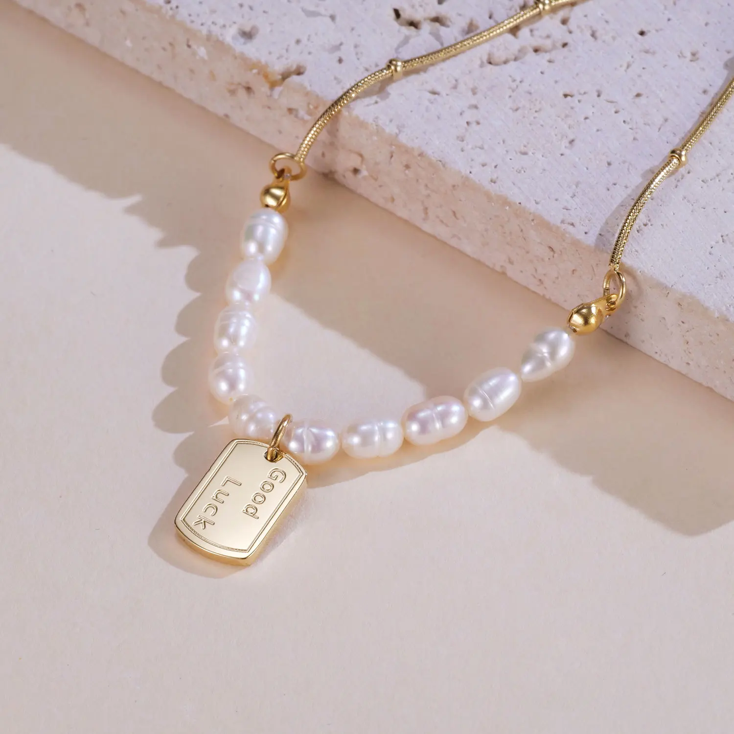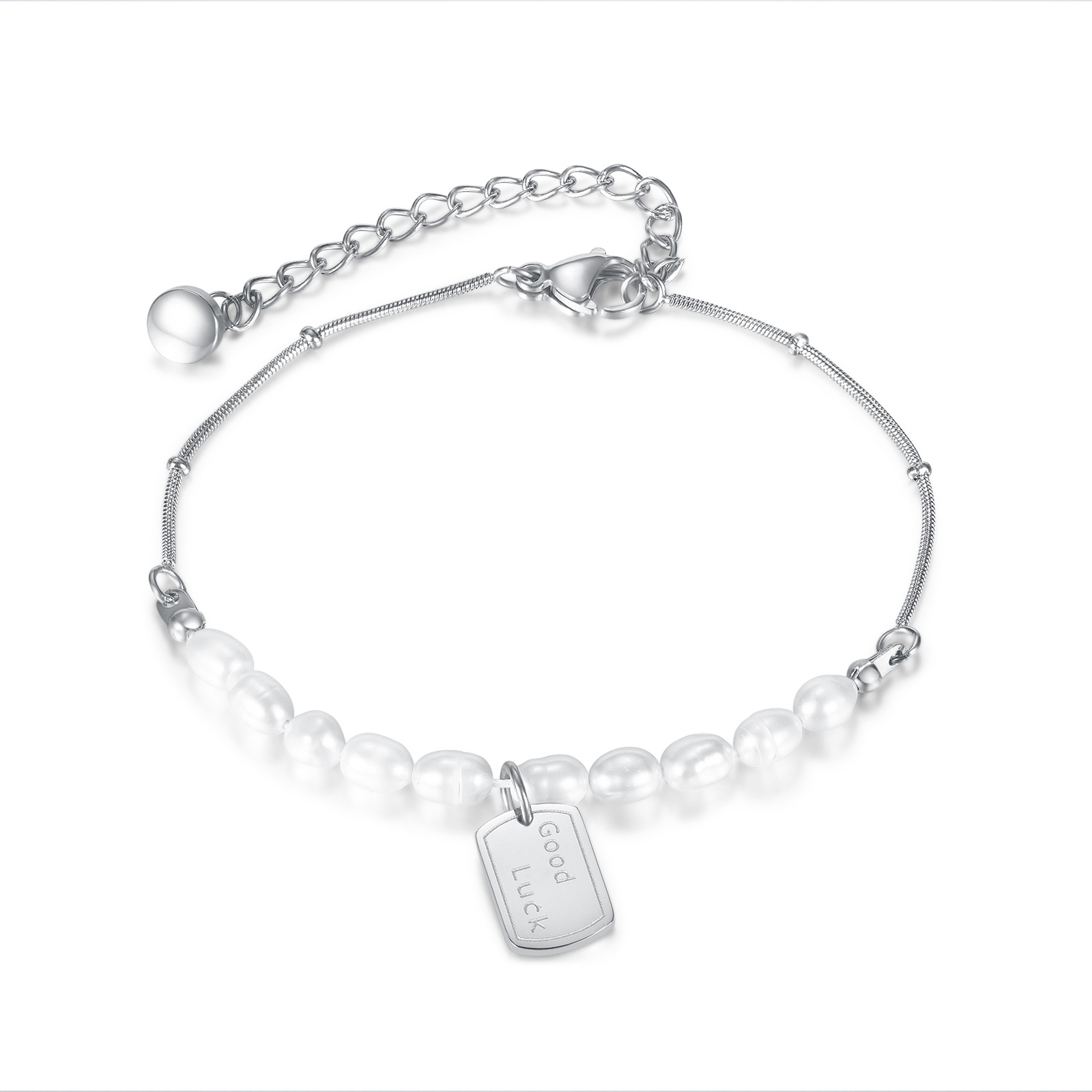 Fashion Titanium Steel Good Luck Square Plate Jewelry High-Grade Light Luxury Freshwater Pearl Bracelet