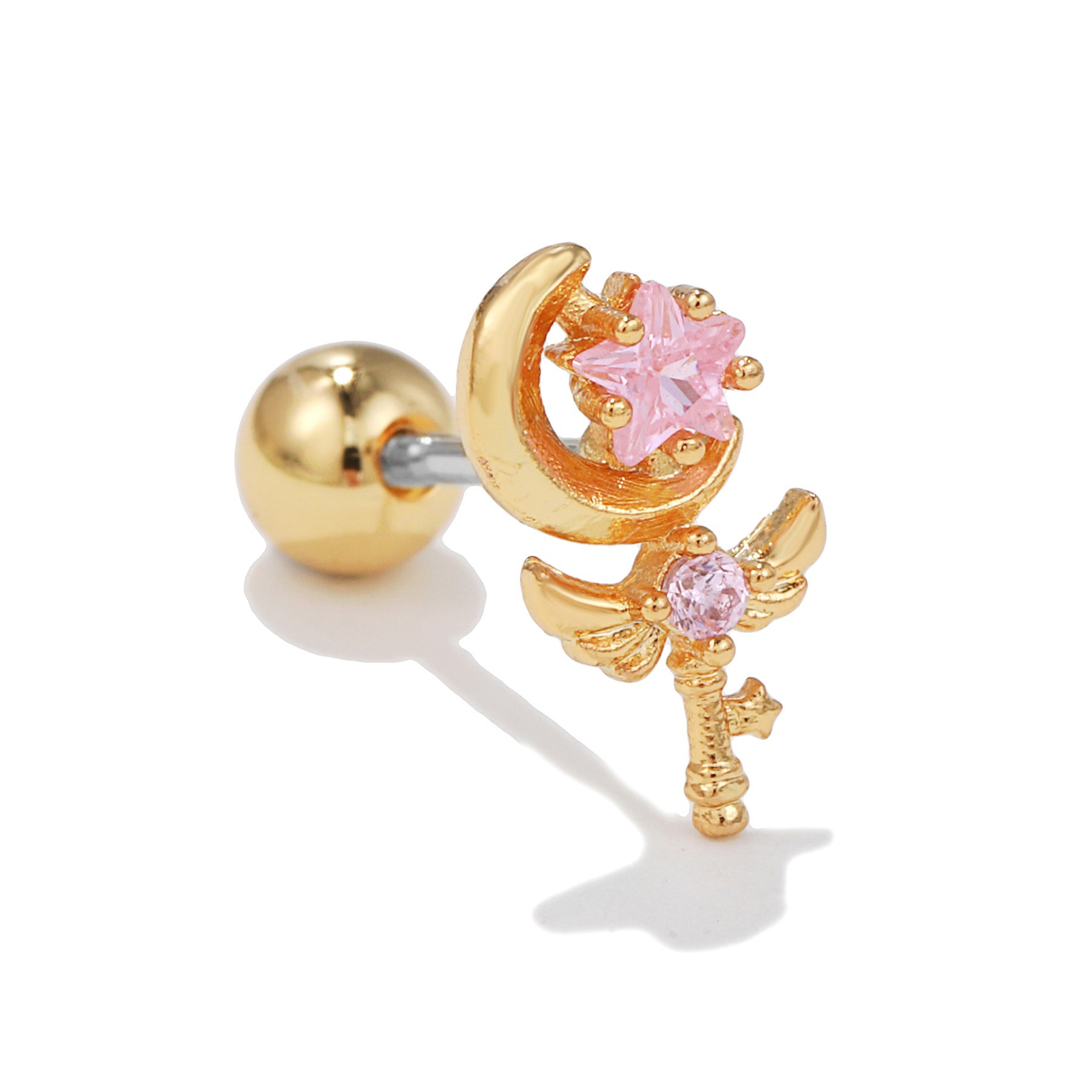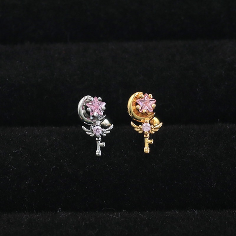 | Color | [Yellow Gold] Star Moon Pink Diamond Earrings, [White Gold] Star and Moon Pink Diamond Earrings |