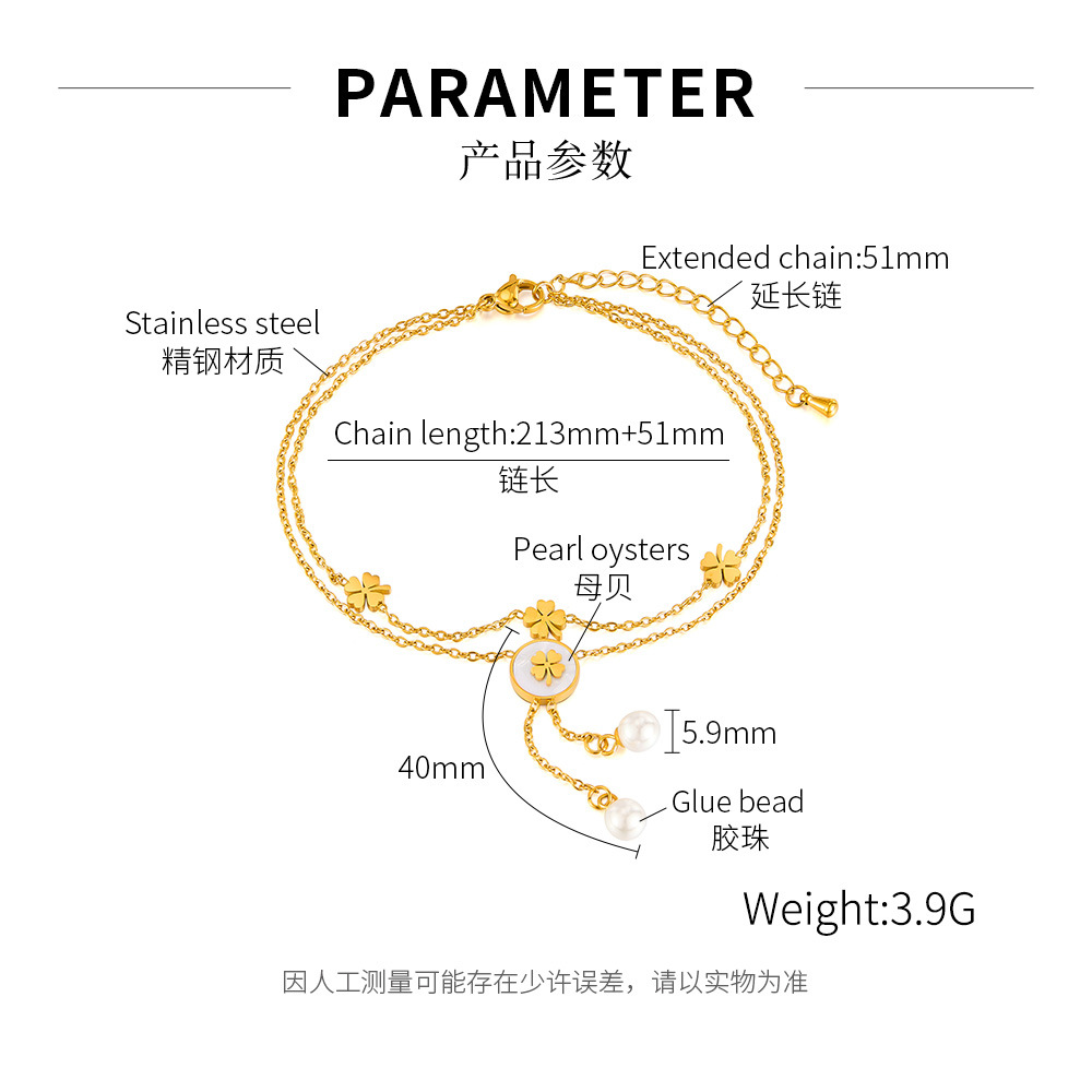 Be the first to review “Fashionable and Versatile Stainless Steel Double-layer Layered Jewelry Mother Shell Flower Tassel Pearl Pendant Bracelet” Cancel reply