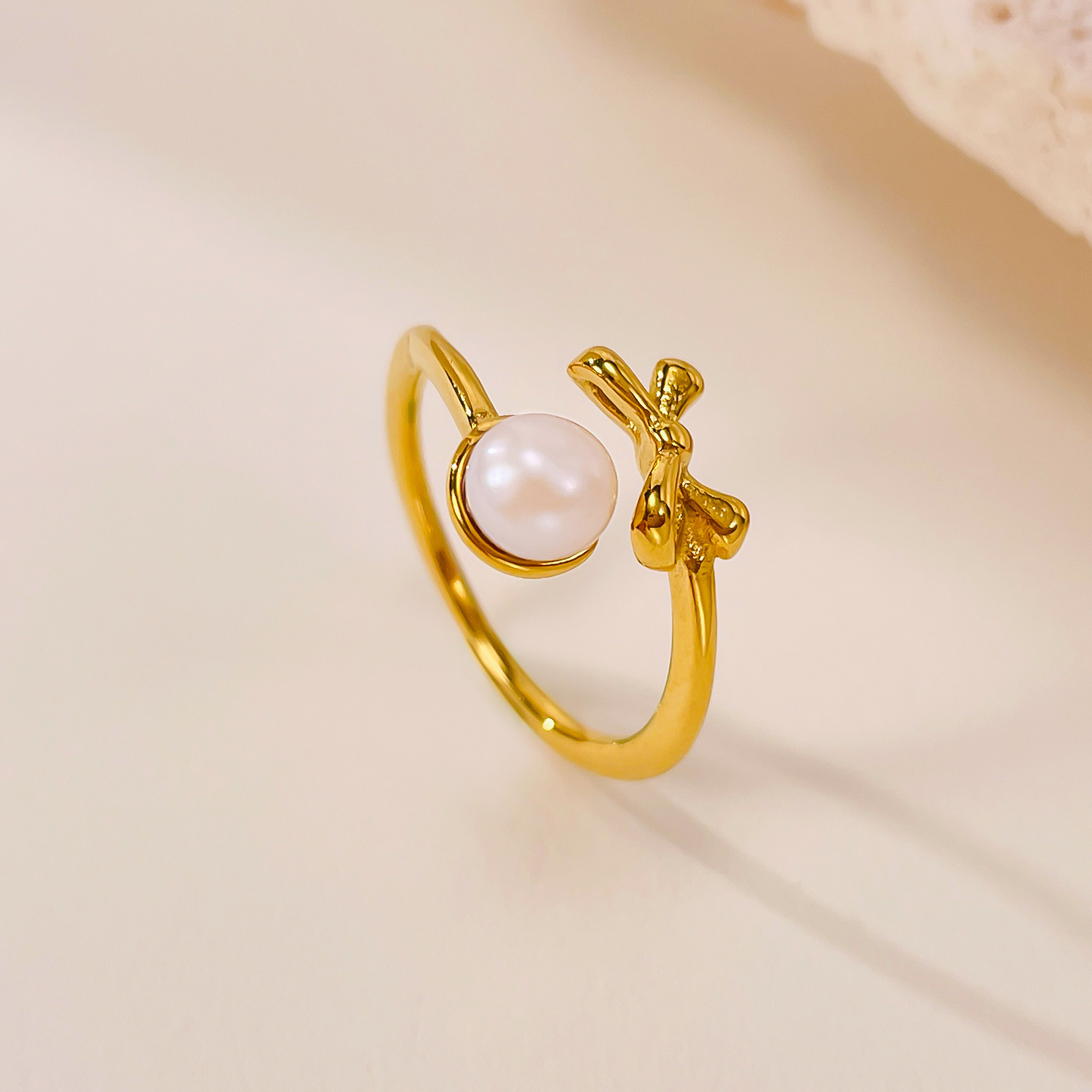 Be the first to review “French Style Ring for Women Stainless Steel Niche Elegant Light Luxury Bowknot Pearl Open Titanium Steel Ring” Cancel reply