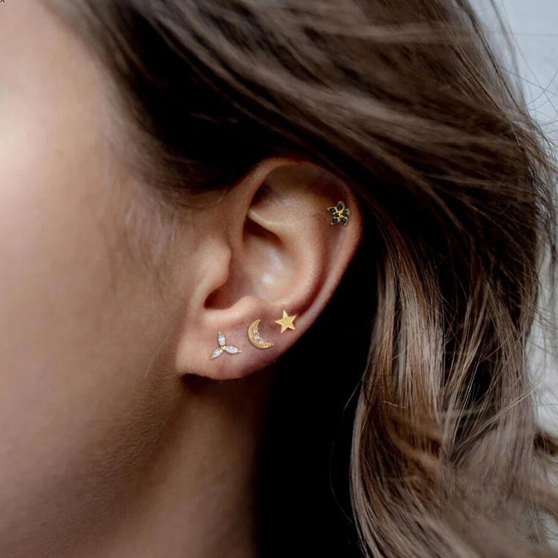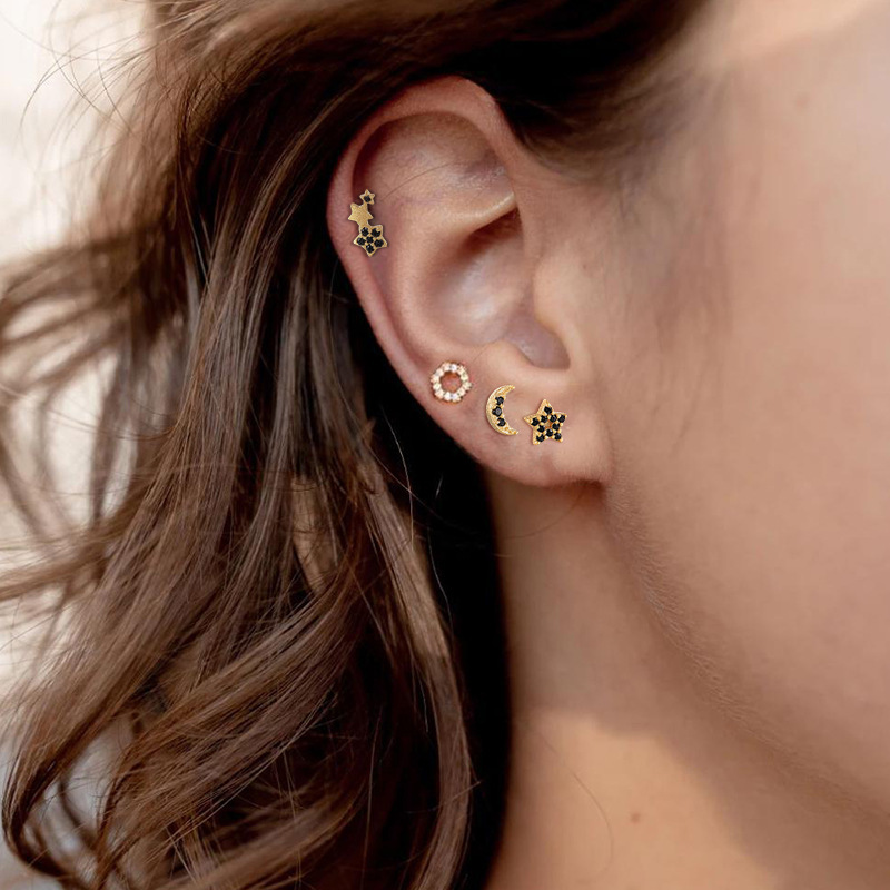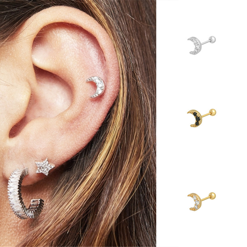 | Color | [Yellow Gold] Black Diamond Moon Earrings, [Yellow Gold] White Diamond Moon Stud Earrings, [White Gold] White Diamond Moon Stud Earrings |