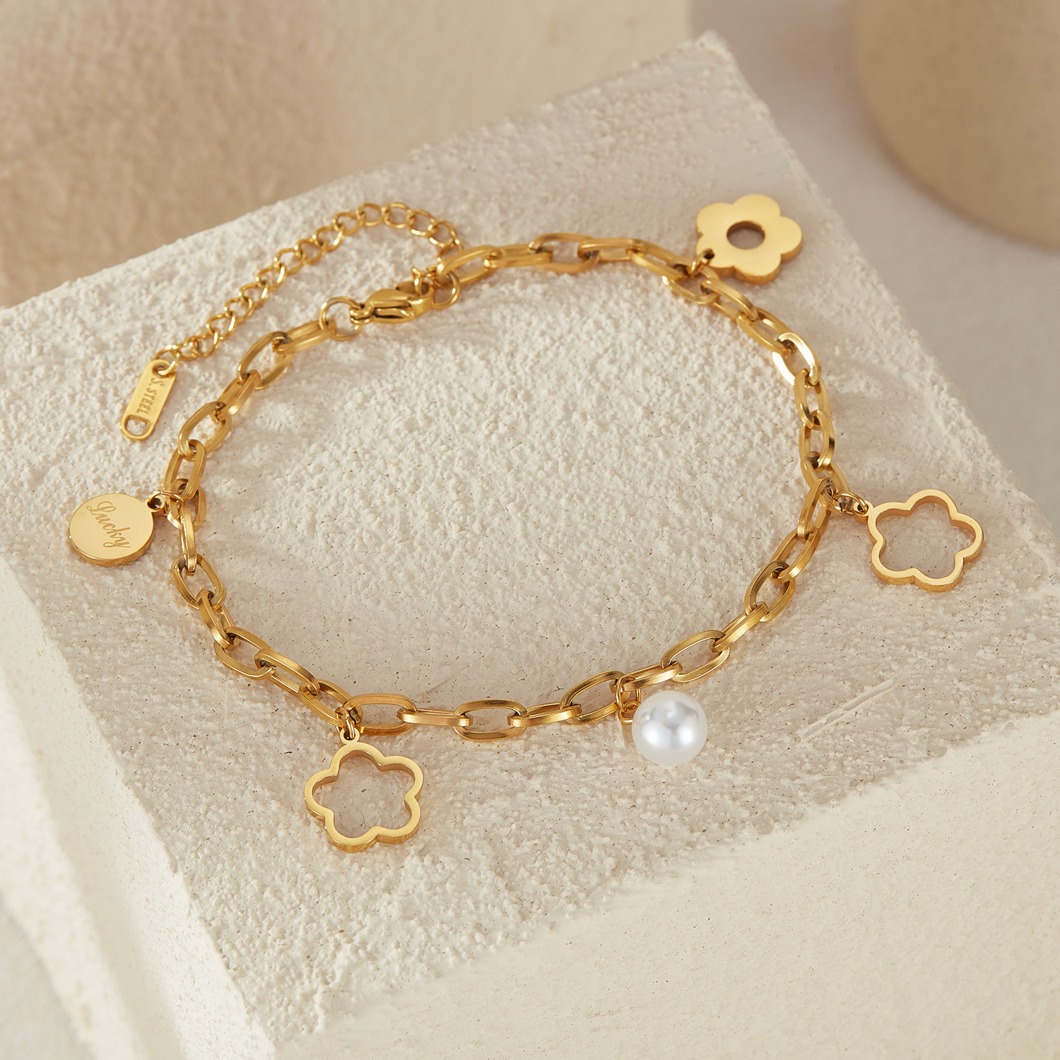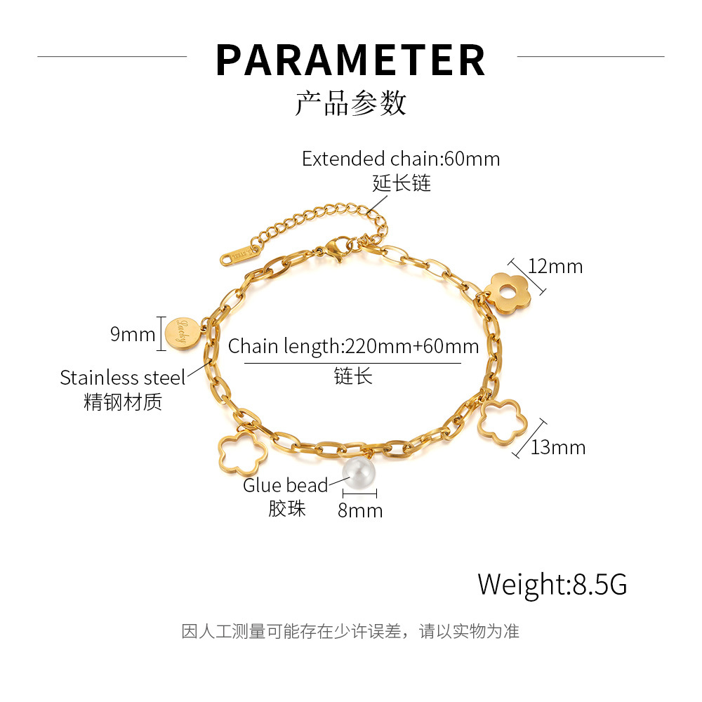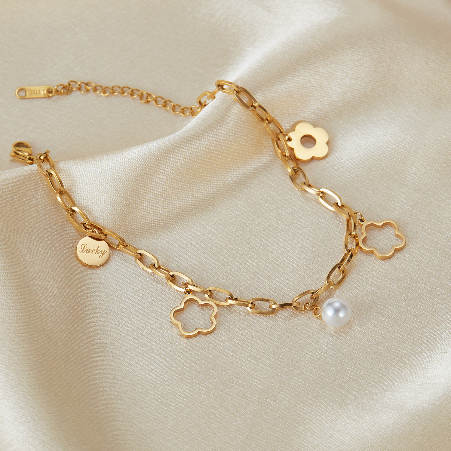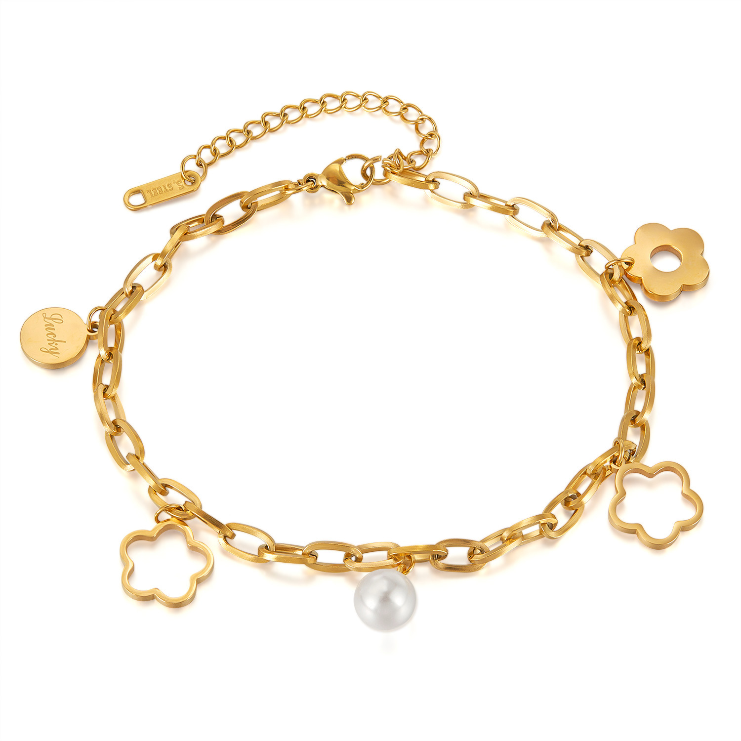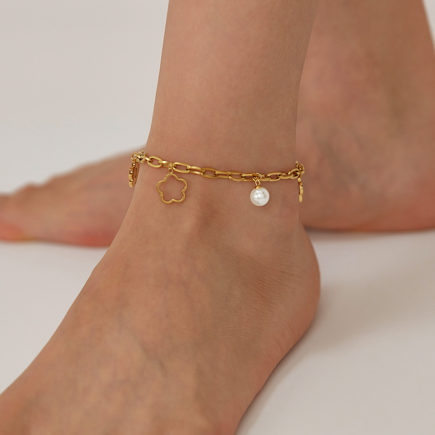 Be the first to review “Hollow Out Lucky Flower Titanium Steel Anklets with Pearl 18K Gold Plated Waterproof Non Allergy Jewelry for Women” Cancel reply