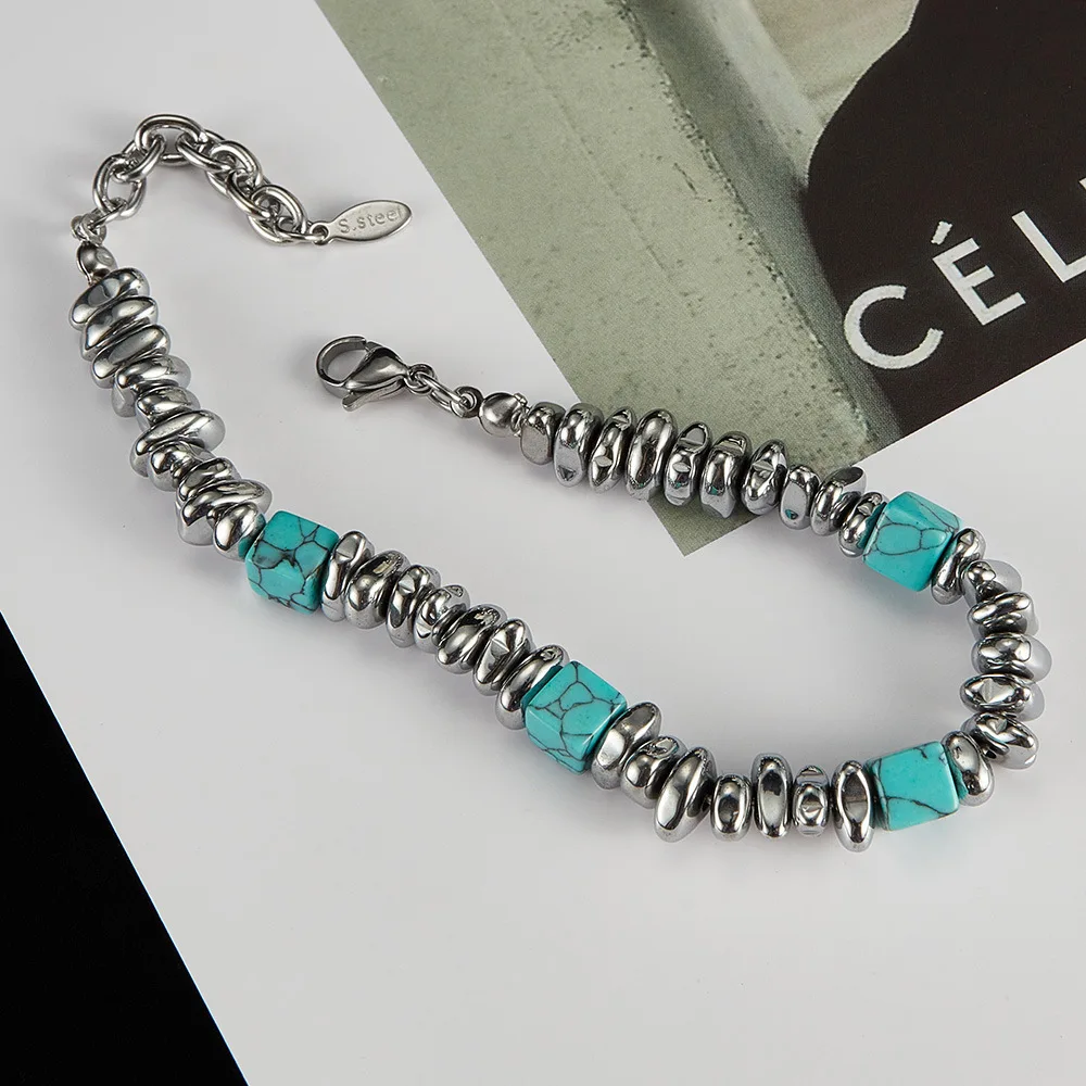 Hot Fashion Stainless Steel Personality Design Turquoise Hematite Bracelet