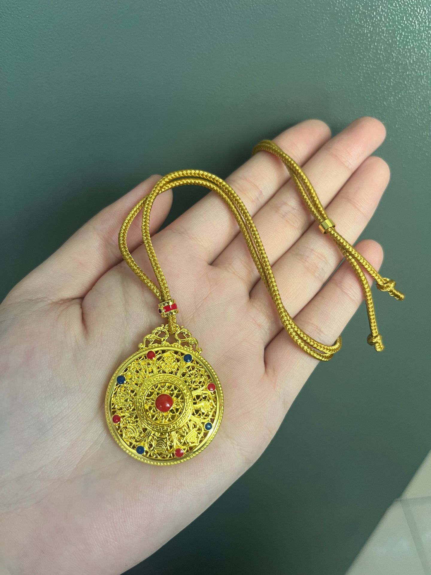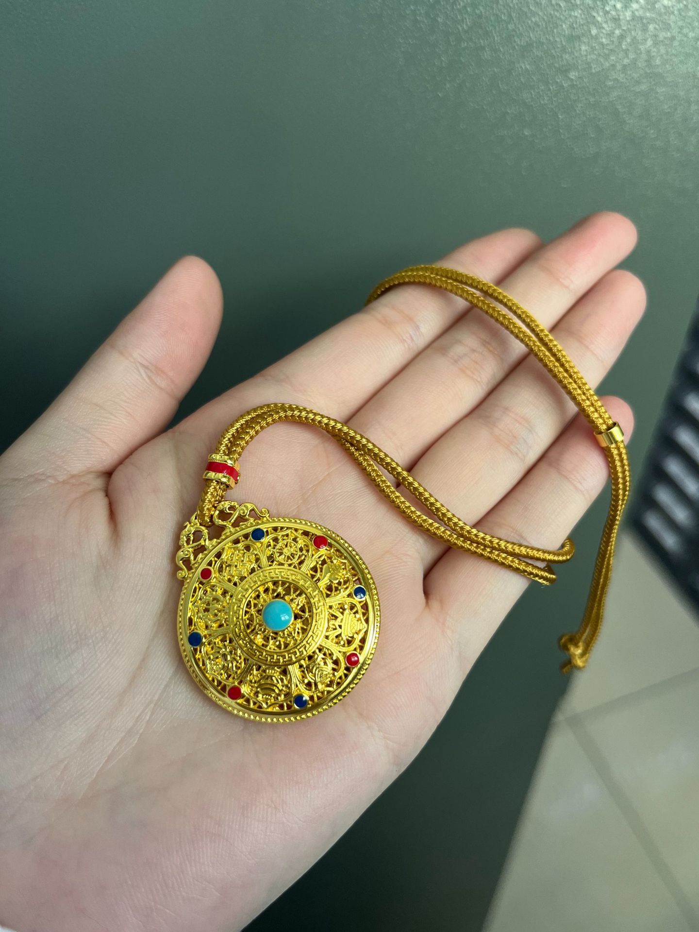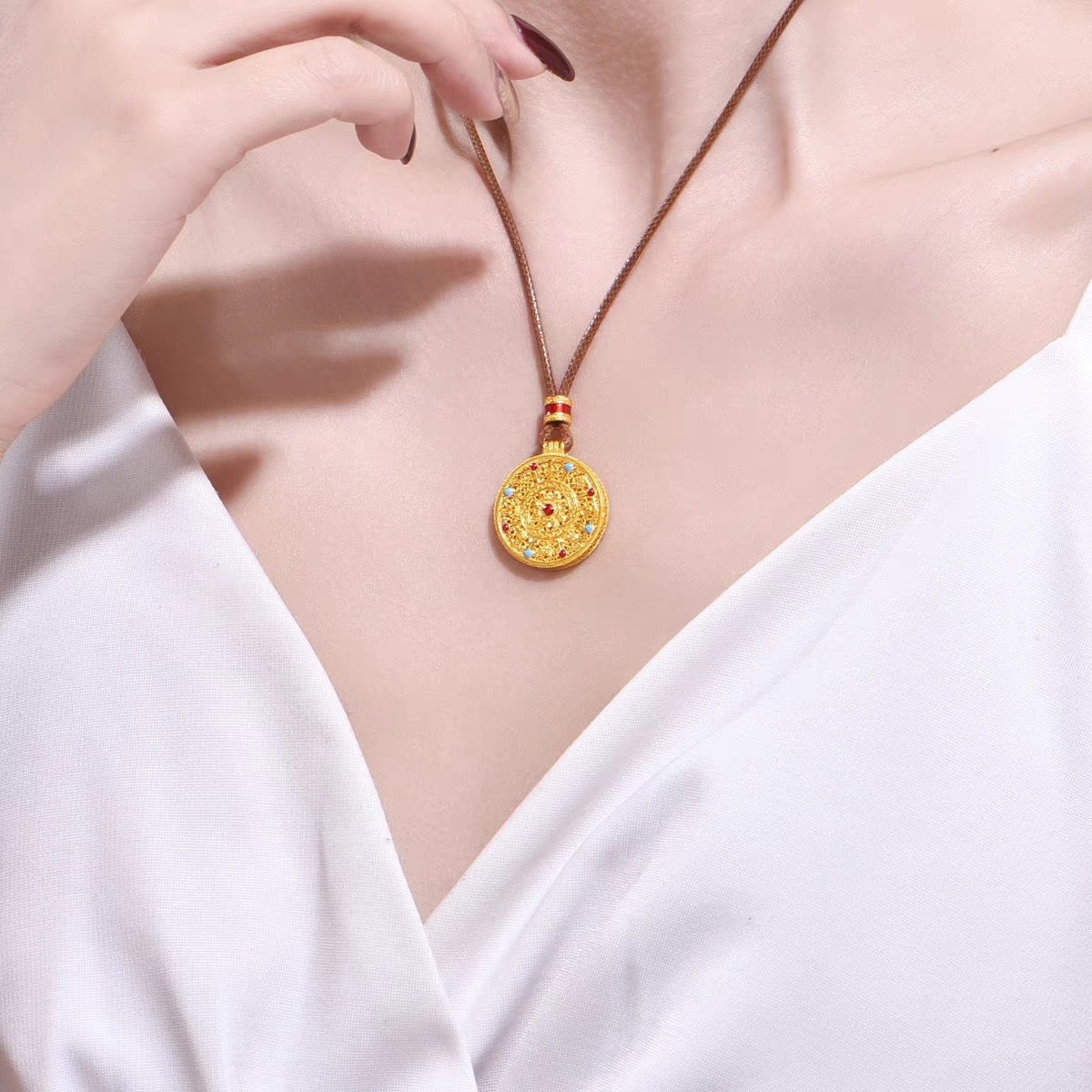 Be the first to review “Hot sale Sand Gold Hollowed Out Enamel Colored Diamond Eight Treasure Compass Pendant Lucky and Auspicious Necklace” Cancel reply