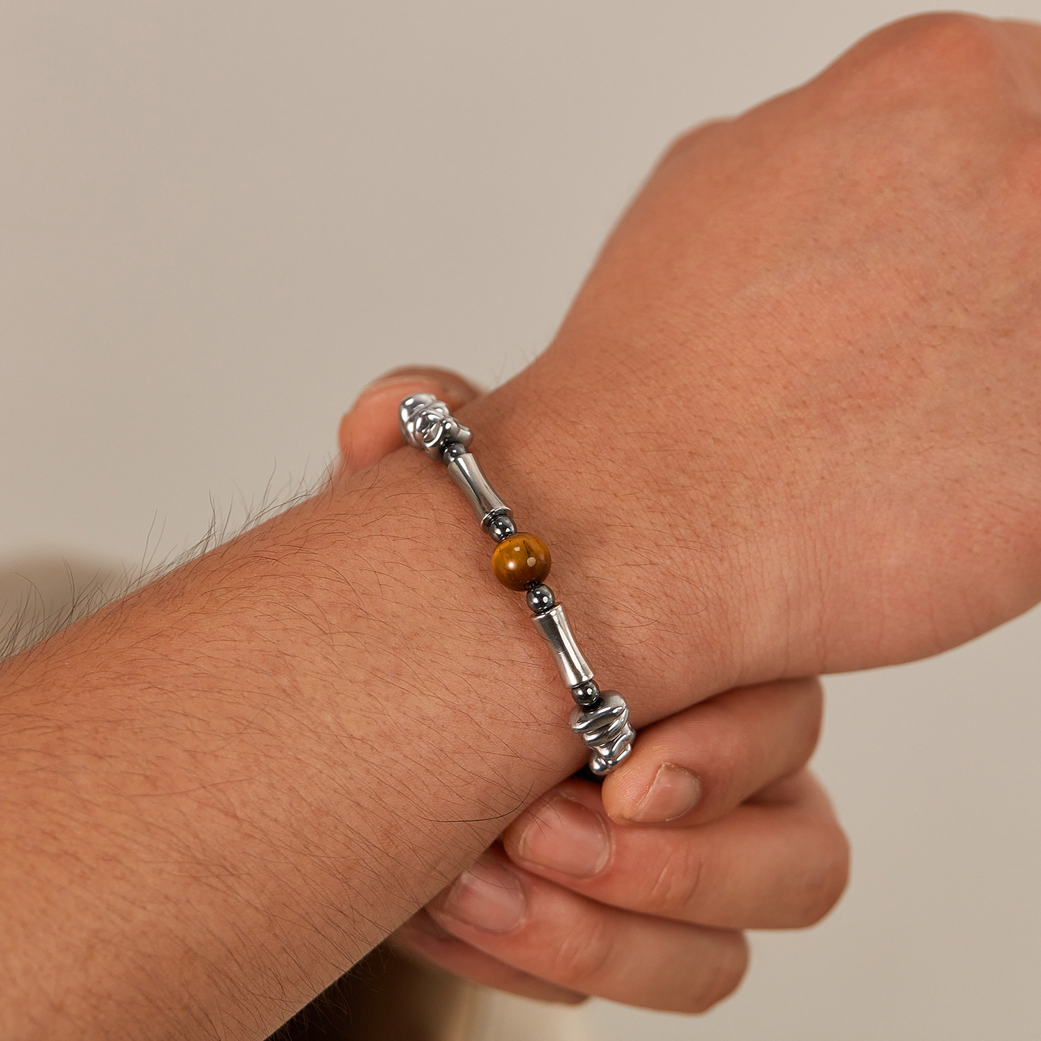 Hot Selling Personality Fashion Stainless Steel Haematite Tigereye Men’s Bracelet