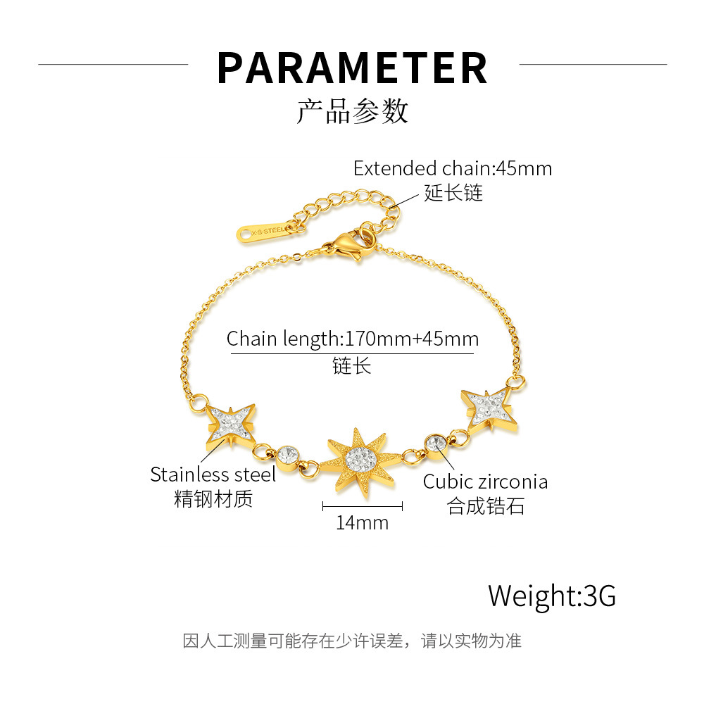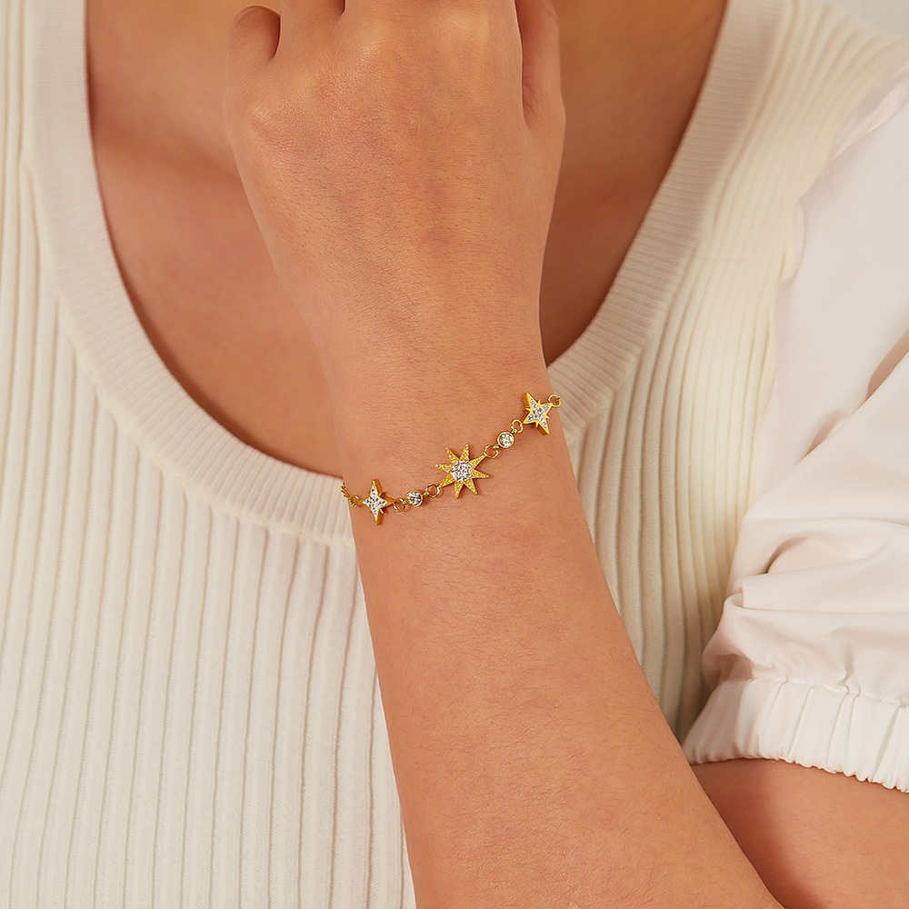Japanese and Korean Fashion Commuter Elegant Stainless Steel Eight Awn Star Full Diamond Star All-Match Bracelet Female