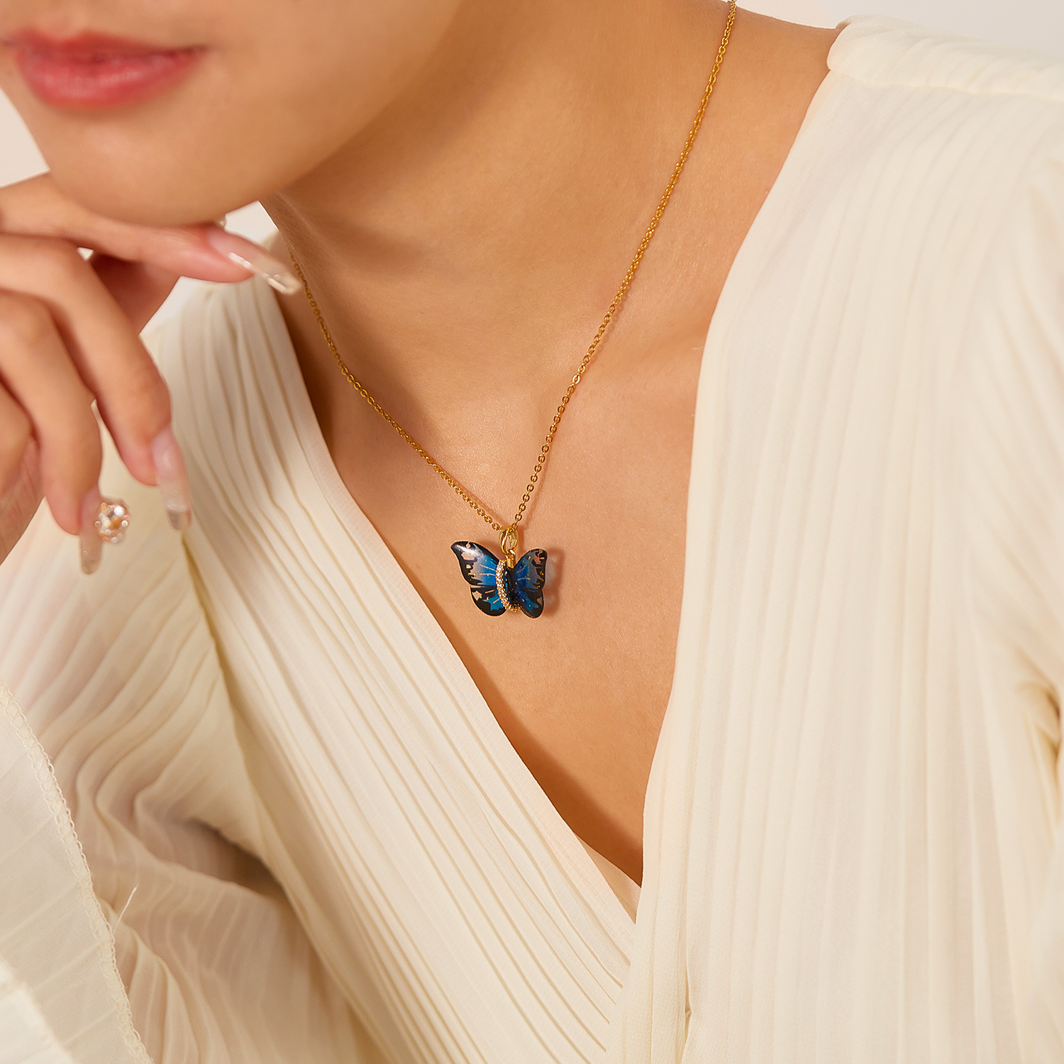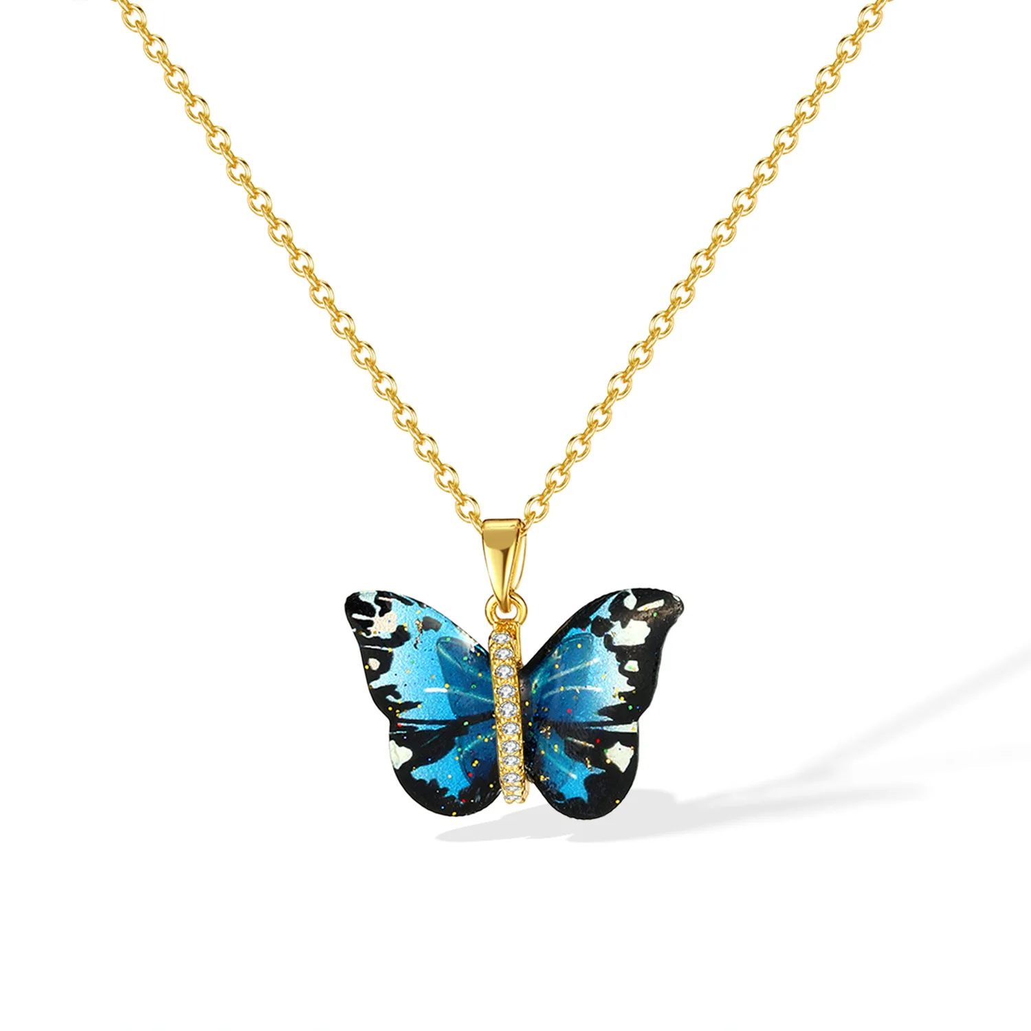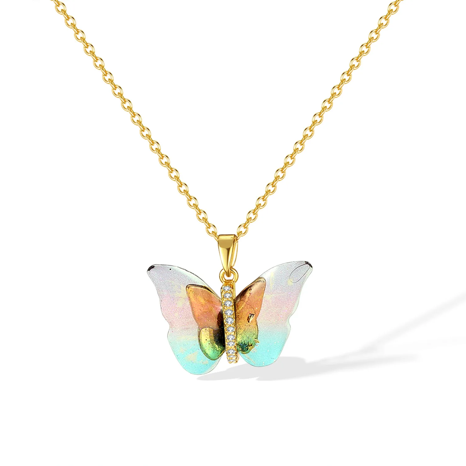 Japanese and Korean Fashion Design Color Gradient Butterfly Temperament Copper Pendant High-Grade Clavicle Chain