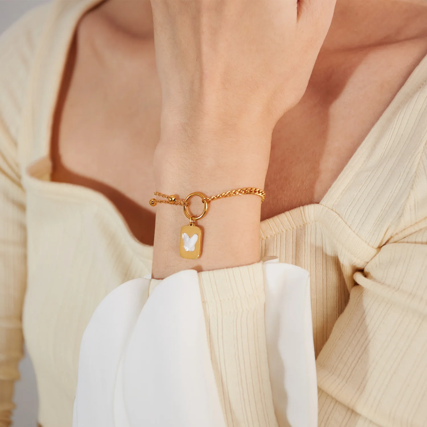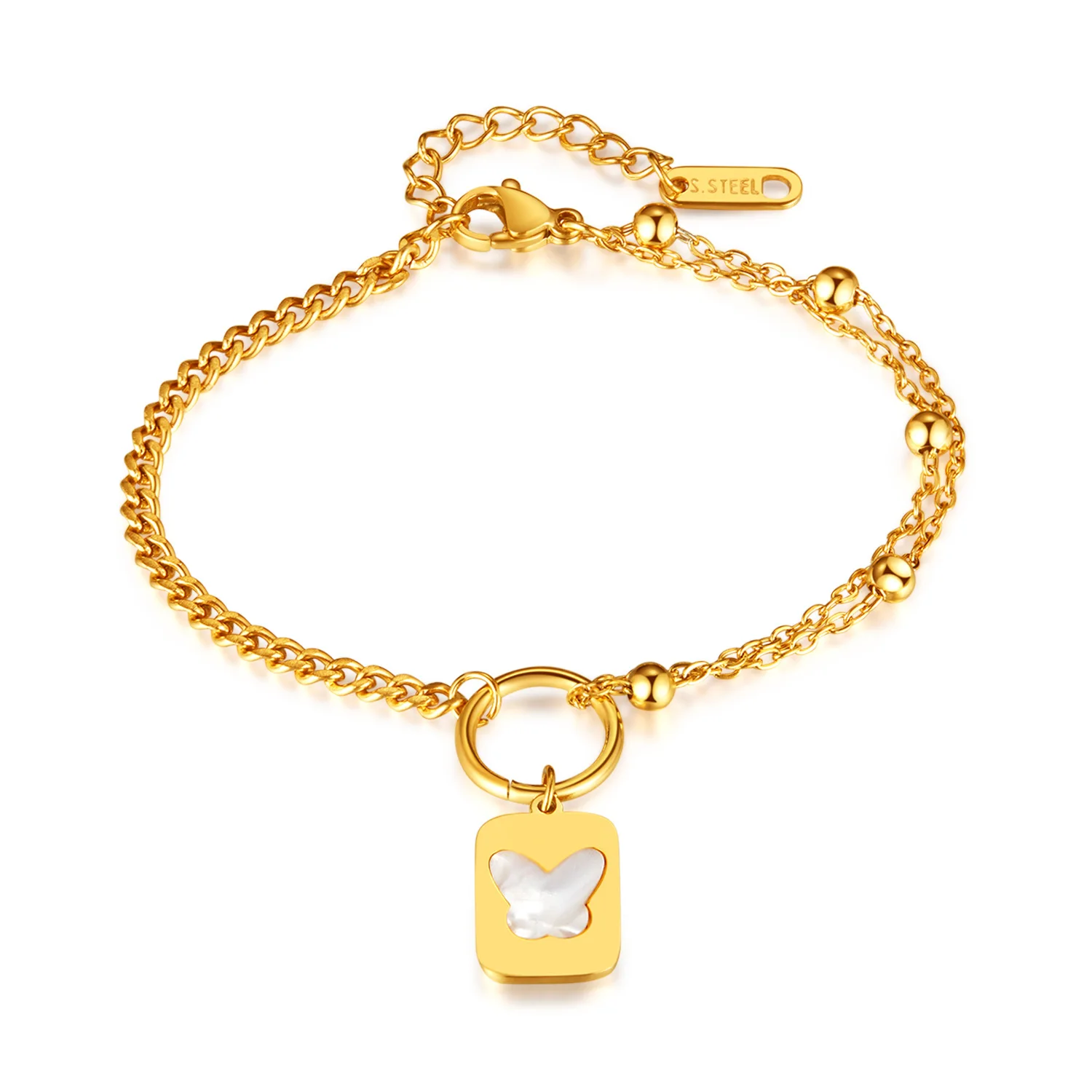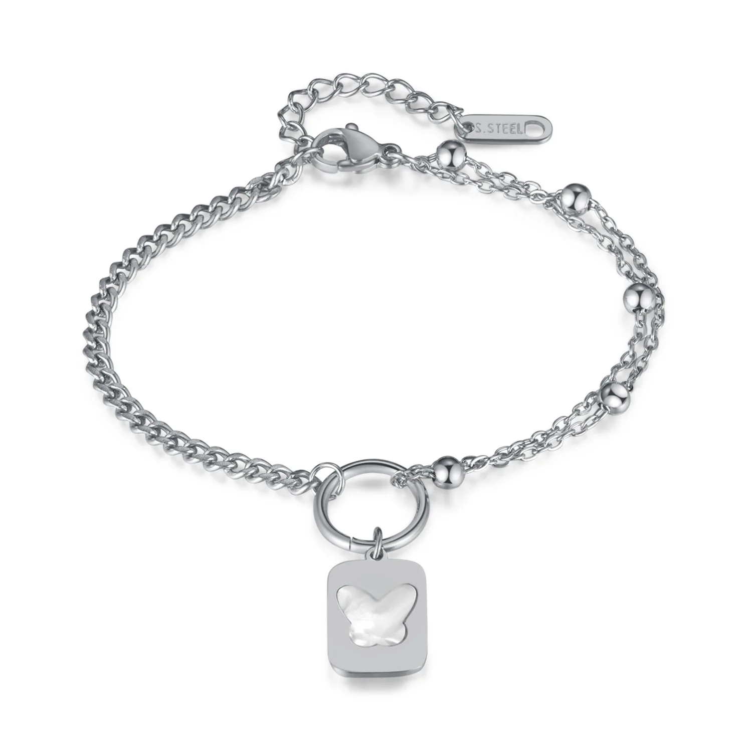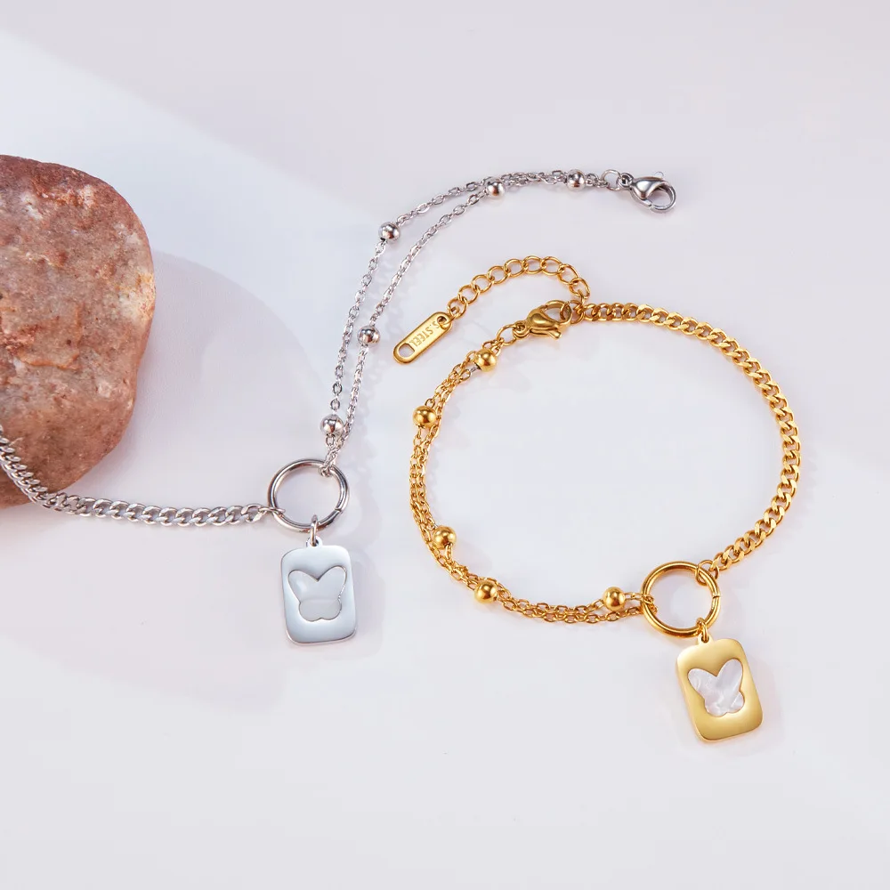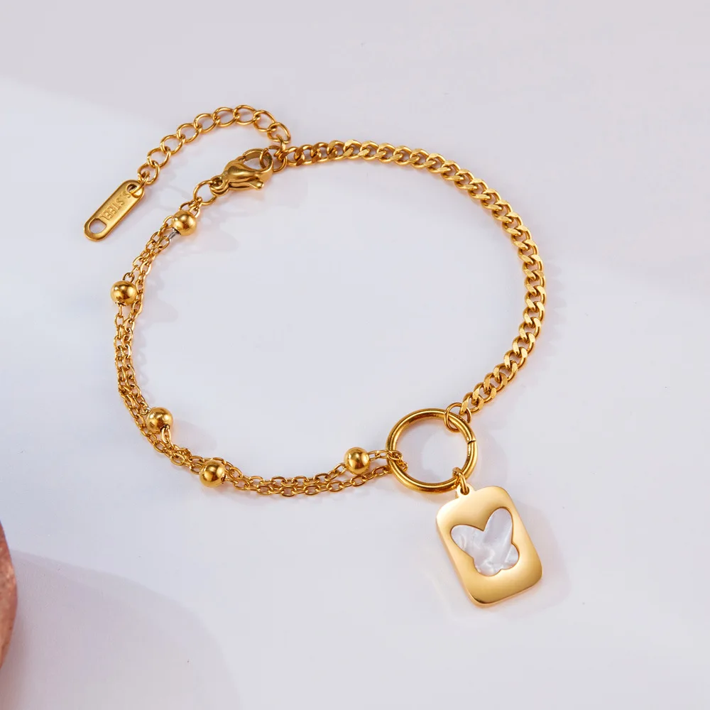 Korean Fashion Stainless Steel Square Plate Pendant Simple All-Match Double-Layer Titanium Steel Twin Bracelet for Women