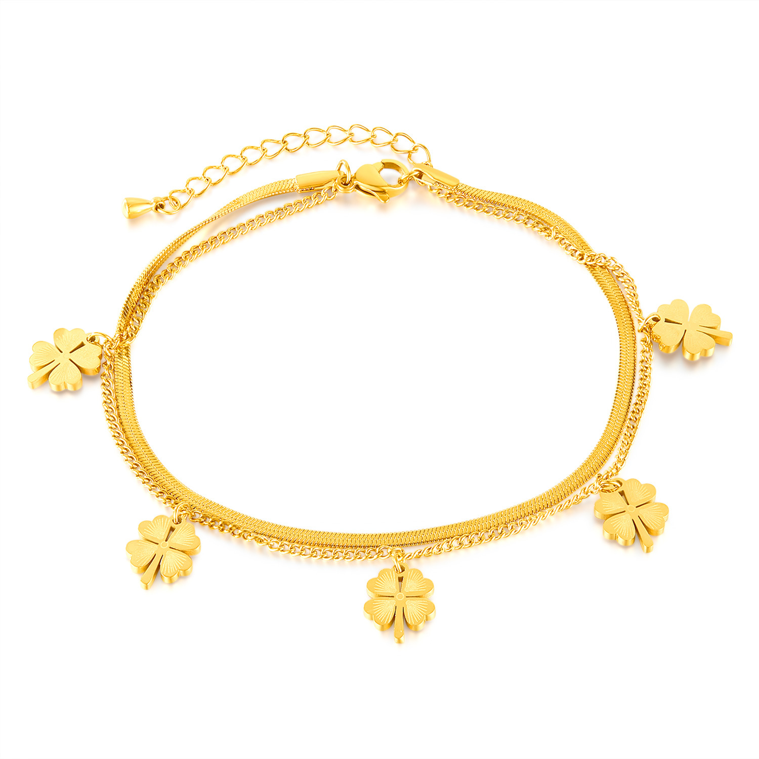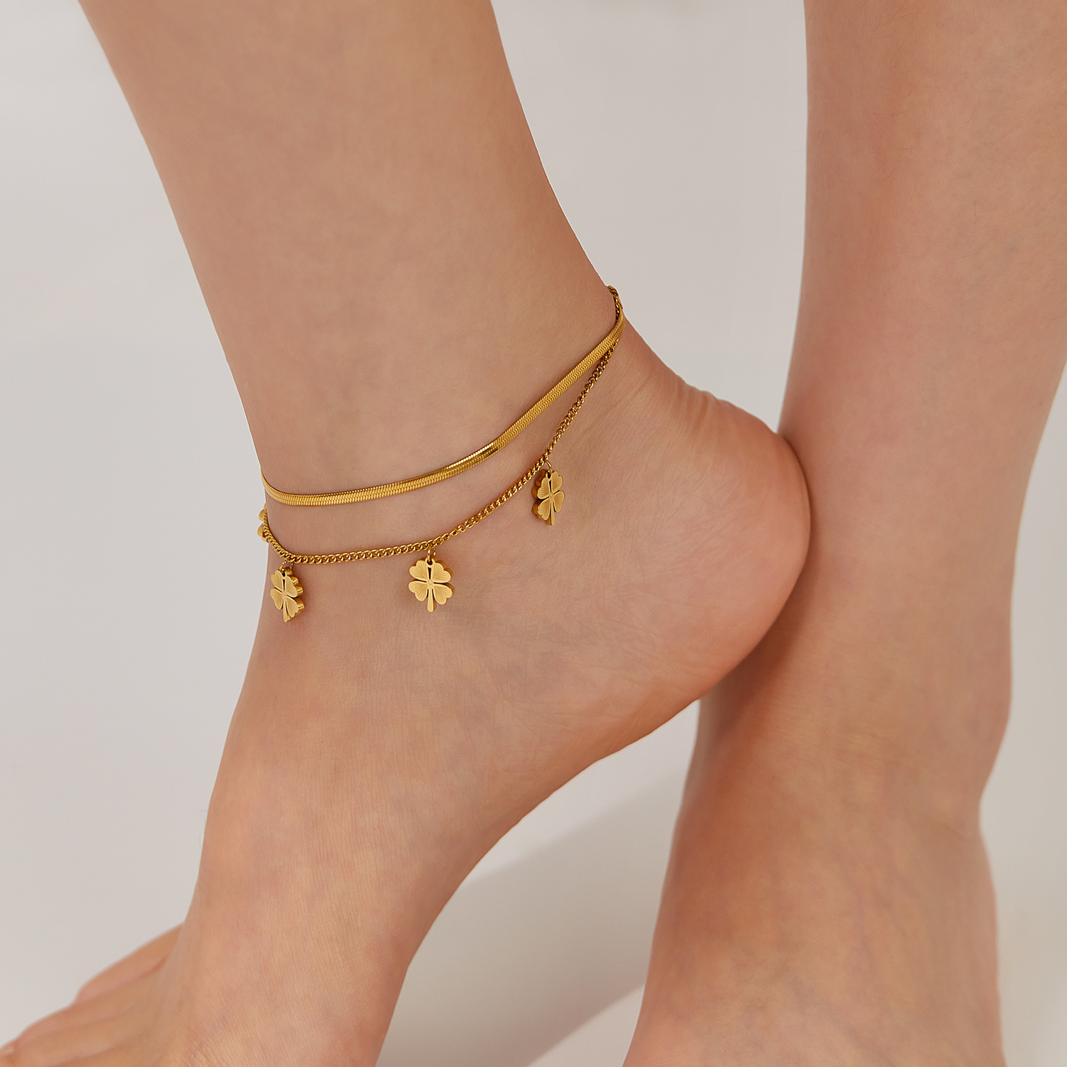 Be the first to review “Layered Stainless Steel 4 Leaf Clover Flower Charm Anklet for Women Fashion Chain Gold Color Jewelry Gift for Female Wedding” Cancel reply