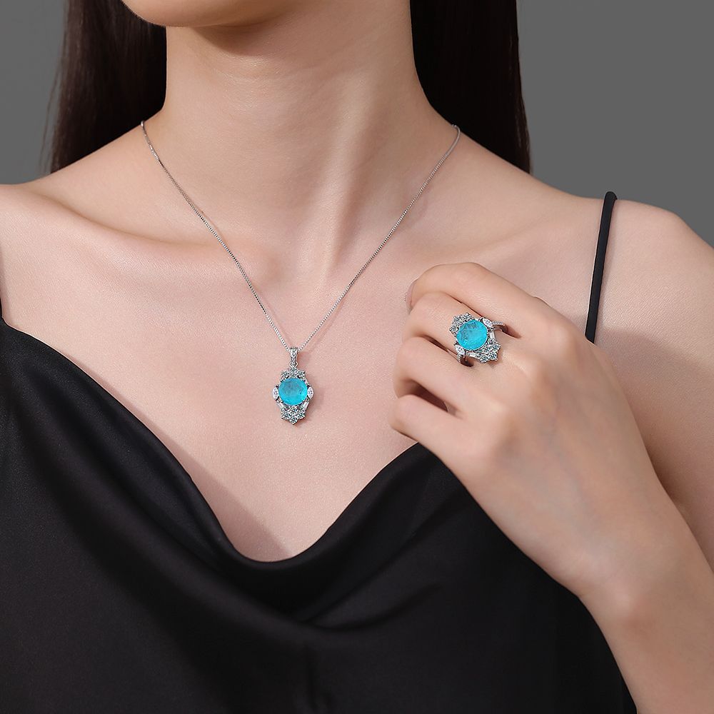 Be the first to review “New Paraiba Women’s Jewelry Set Zircon Stud Earrings Pendant Adjustable Ring Set Party Gift” Cancel reply
