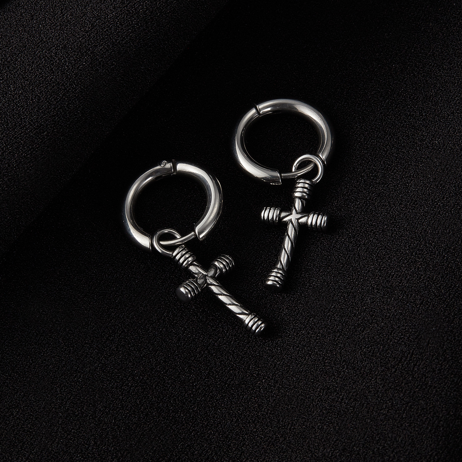 New Personalized Fashion Stainless Steel Cross Shelf Earrings Earrings Men’s Wholesale
