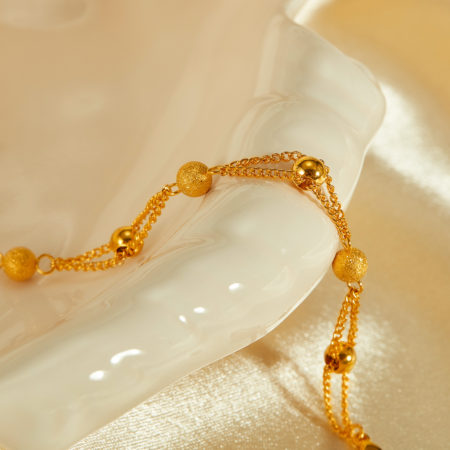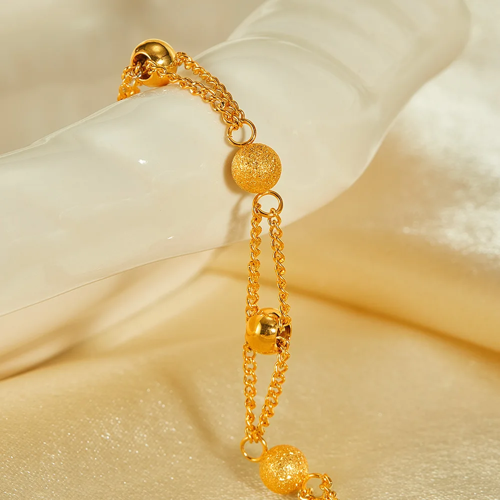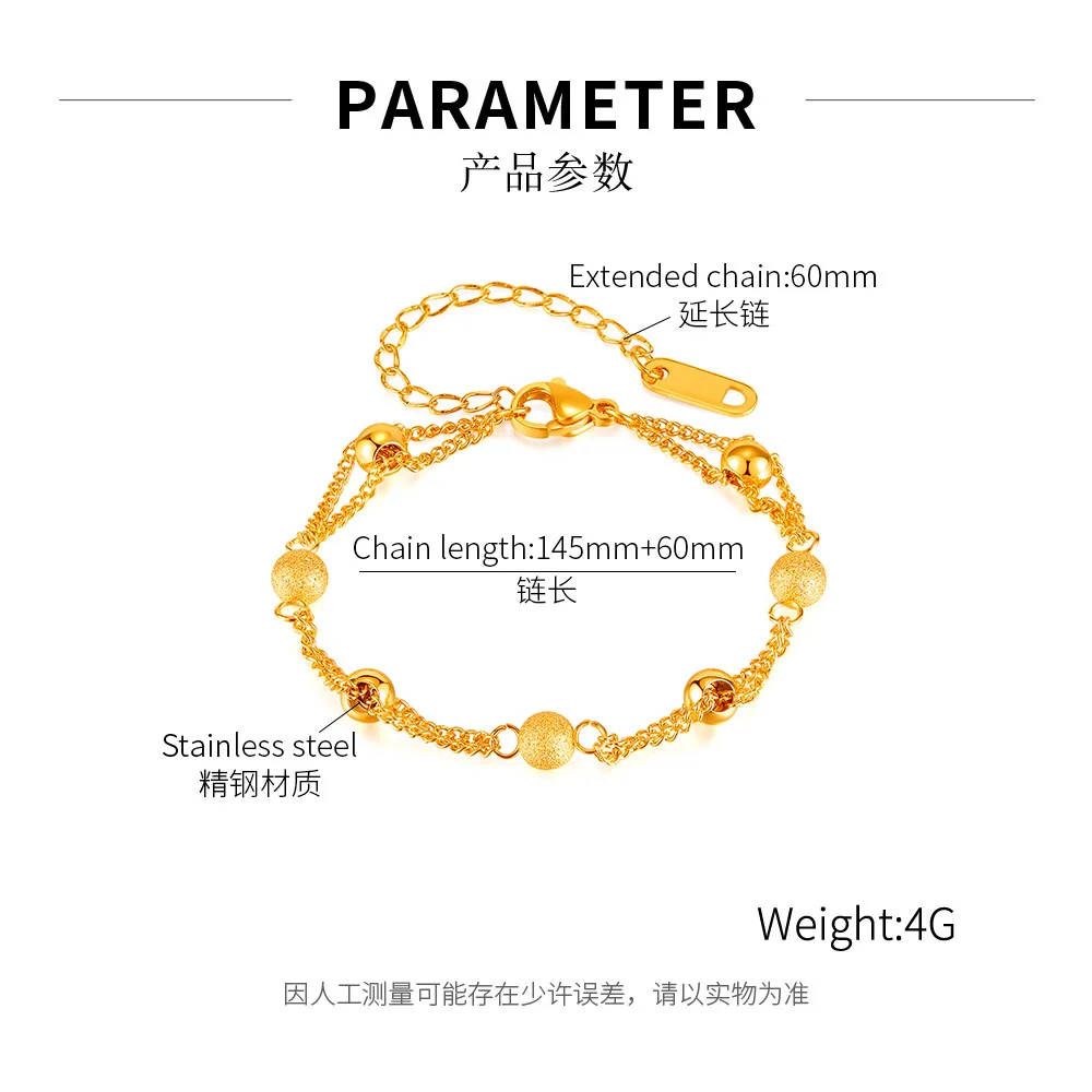 New Personalized Simple Stainless Steel Gold-Plated Matte Round Beads Bracelet