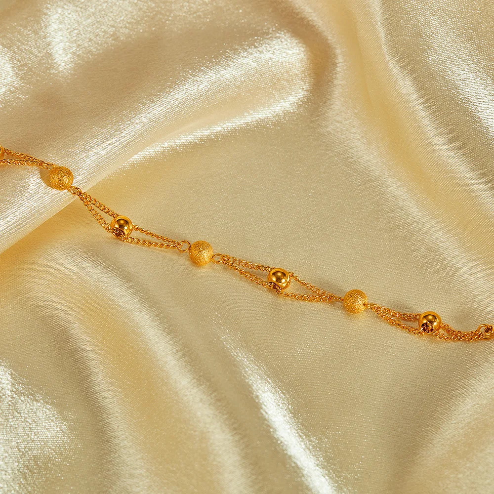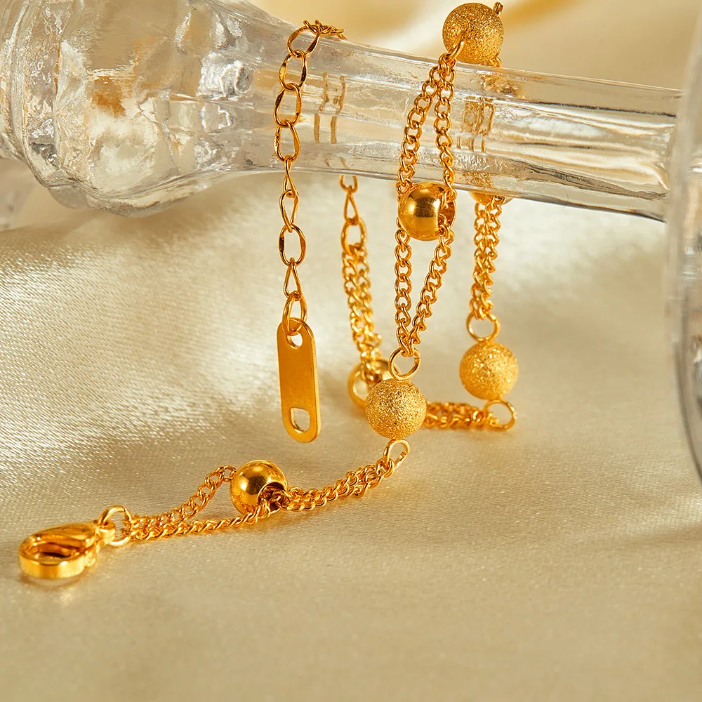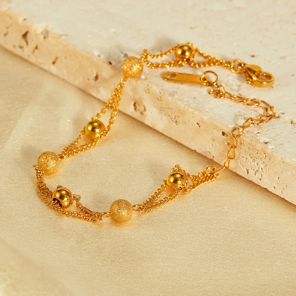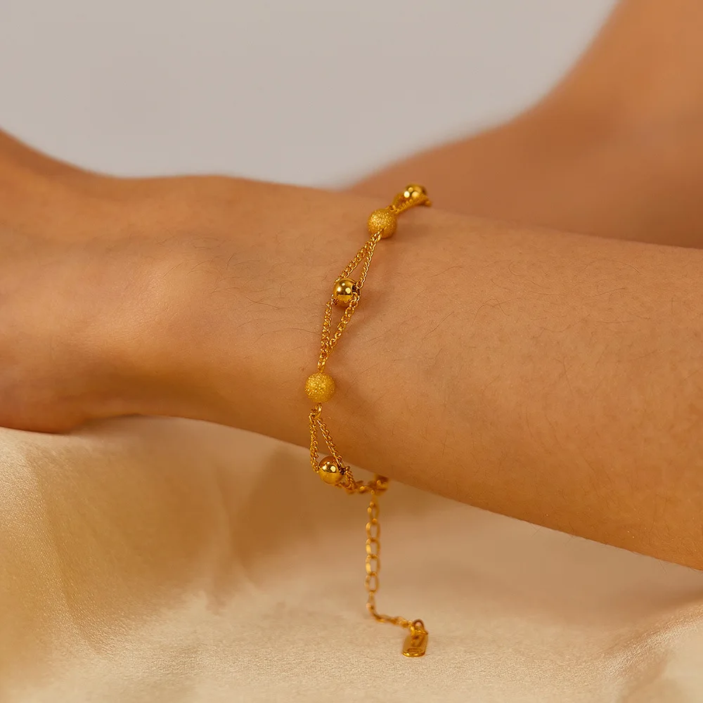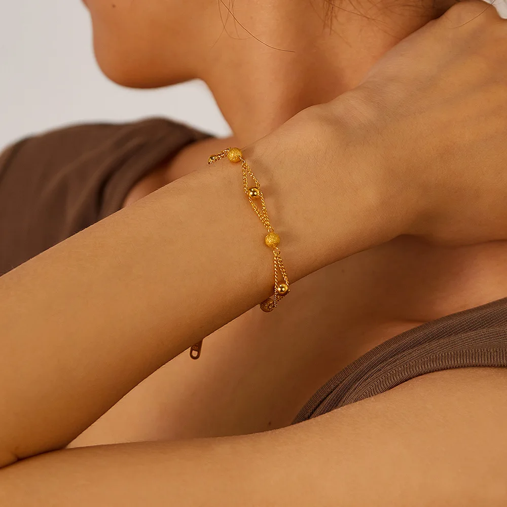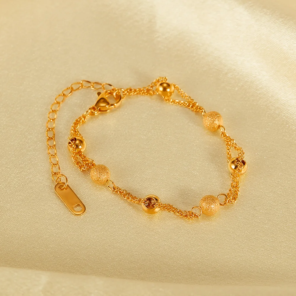 New Personalized Simple Stainless Steel Gold-Plated Matte Round Beads Bracelet