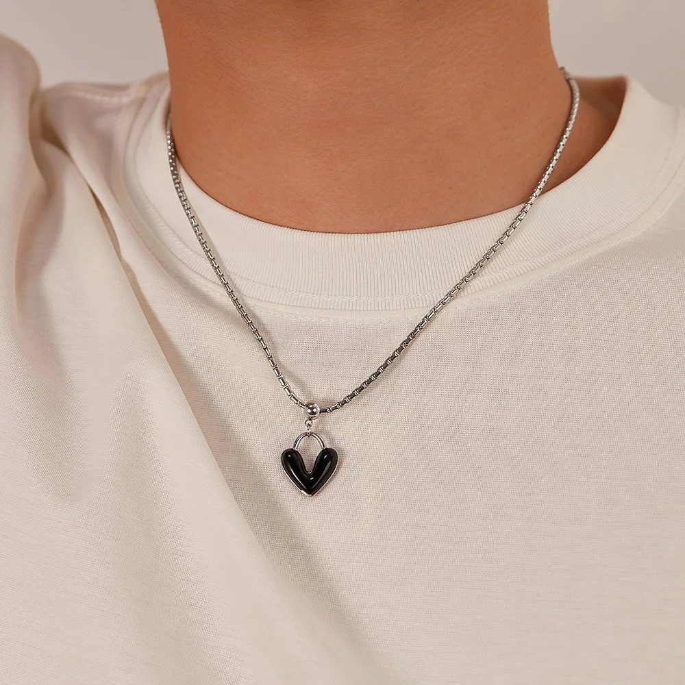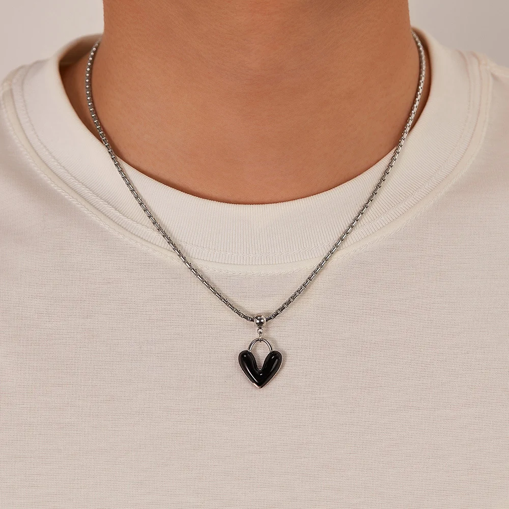 New Special-Interest Design Drop Oil Love Alloy Pendant Stainless Steel Necklace for Men