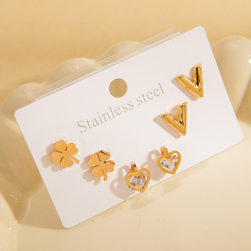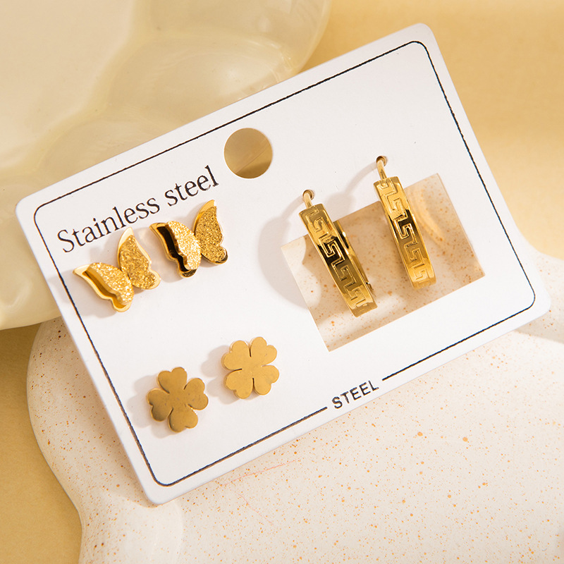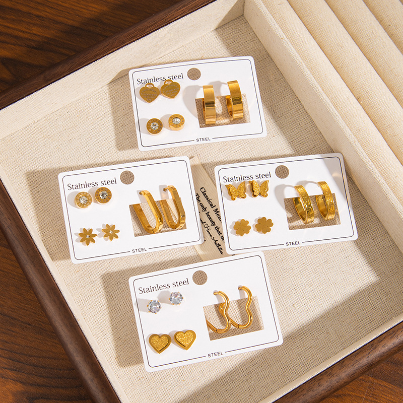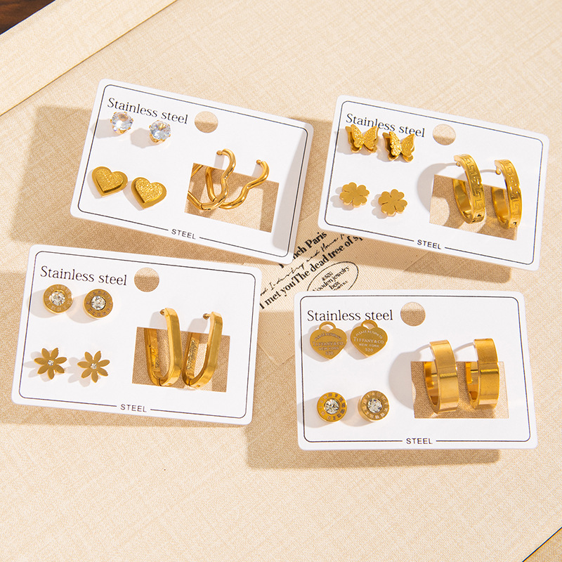 Be the first to review “New Stainless Steel Earring Set Three-Dimensional Butterfly Earrings Roman Numeral Earrings Gold-Plated Zircon Heart Earrings for Women” Cancel reply